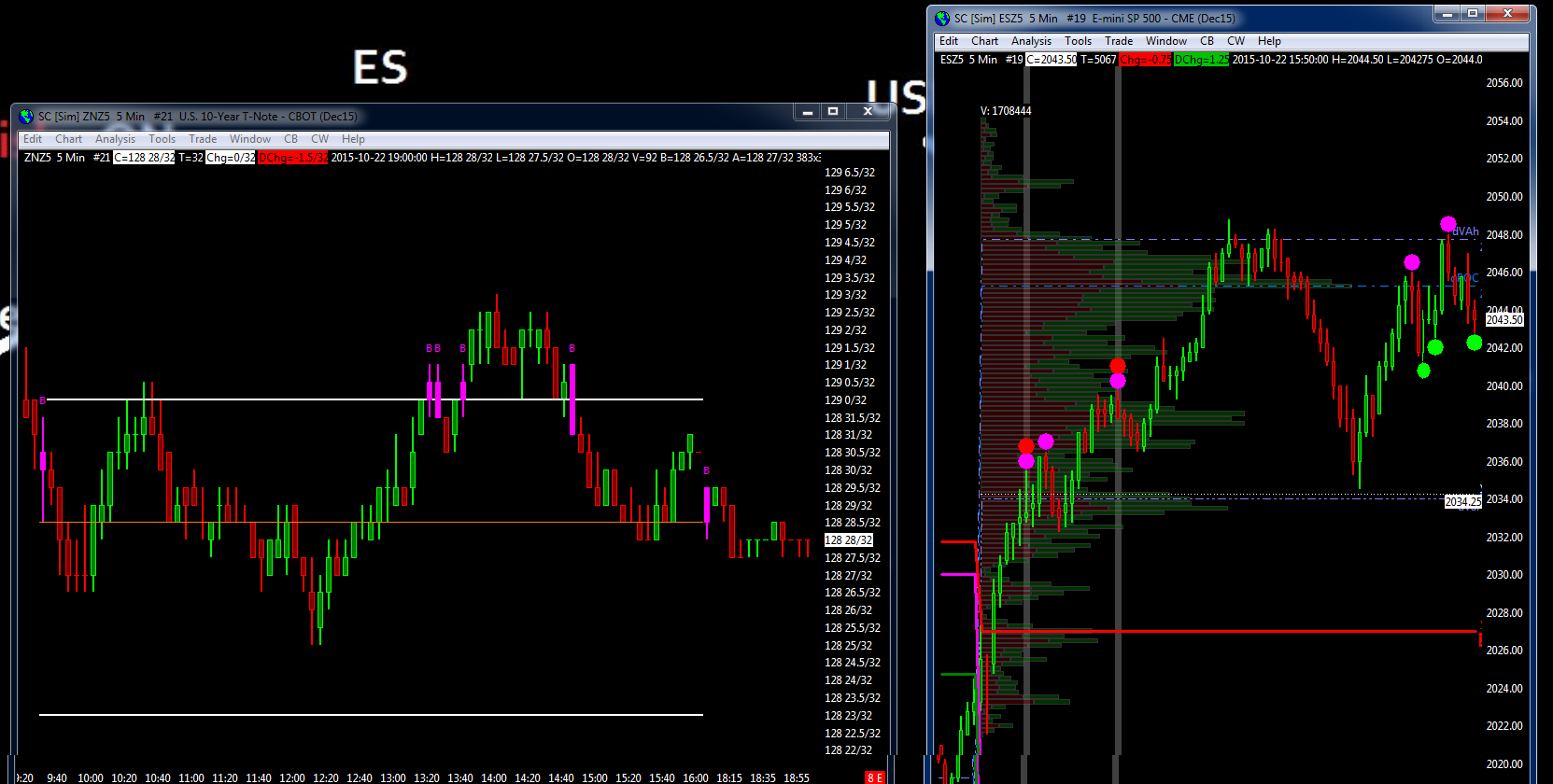 Hi Guys, I have color bar alert on 5 mins bonds chart whenever it crosses yesterday high . When it happens i would like to get same alert displayed on my 5 Mins ES chart ... How do i do that ? Appreciate your time |