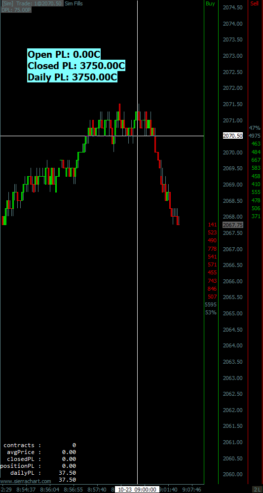SC Team - There is a potential bug with Trading Profit loss study ( as well as any calculations associated with Order Fill prices ) when used with remote data service (in my case tried CTS (remote) / CQG (local) ). Observed this behavior during both live / Sim positions. It looks like you need to adjust the calculated AveragefillPrice with s_SCOrderFillData::AverageFillPrice * sc.RealTimePriceMultiplier in your trade related studies. http://www.sierrachart.com/image.php?l=1445608936956.png - Bottom of the chart - own study to calculate this information ( which represents the correct values vs DPL(top left) / profit loss text ). Edit 1 - On second thought - it appears like AverageFillPrice itself might be calculated incorrectly without price multiplier as even the trade stats shows fill price without multiplier applied. Edit 2 - This is NOT an issue with CTS(Remote) / TT (local) combination. So the issue seems to be specific to CTS(remote)/CQG(local) combination (or potentially a remote/local combination of non-decimal/decimal feeds). No big deal whether corrected or not as I have them corrected in own studies.. but thought of bringing this to your attention - in case if there is an easier fix on your side. Thanks Date Time Of Last Edit: 2015-10-24 01:36:45
