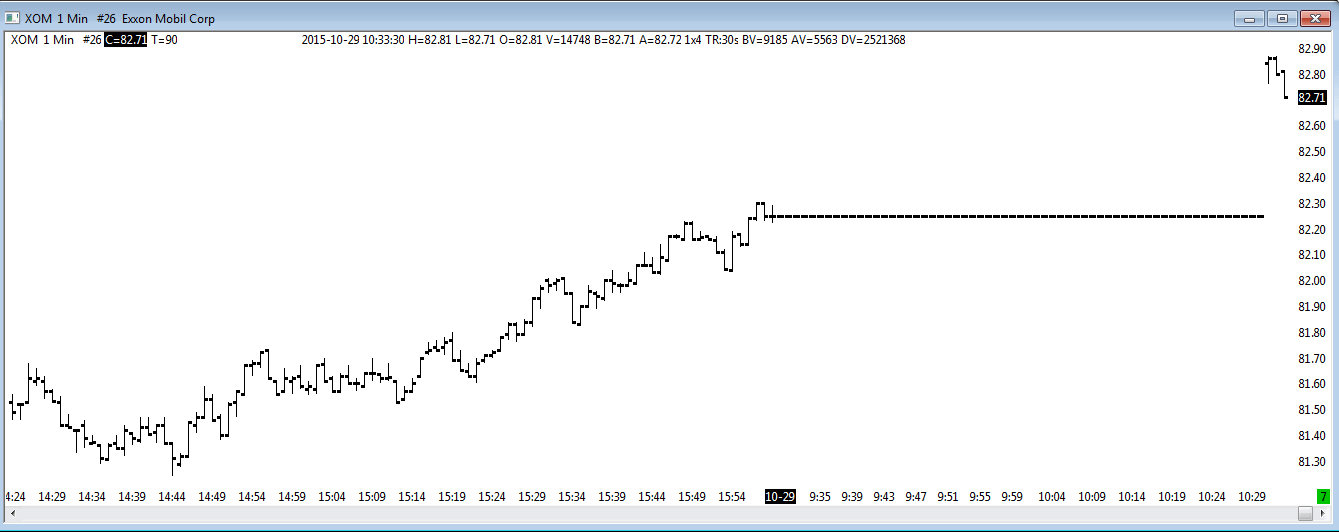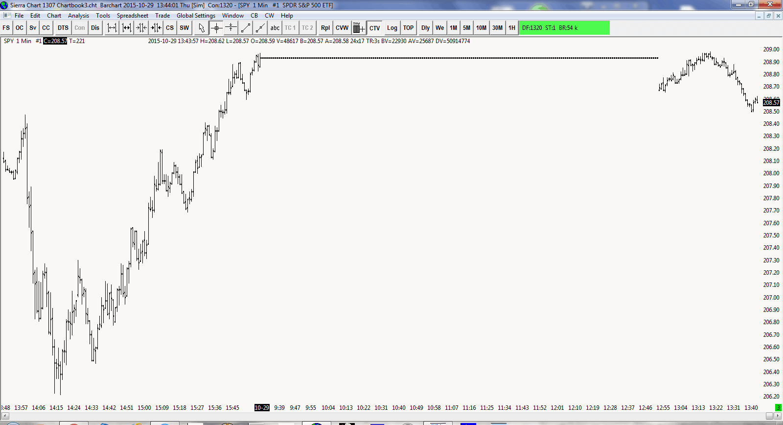 Letting you know the problem has been confirmed. There is no 1 tick data from 2015-10-28 13:00 US Eastern time on the Barchart system. They have been advised of the issue. Sierra Chart Support - Engineering Level Your definitive source for support. Other responses are from users. Try to keep your questions brief and to the point. Be aware of support policy: https://www.sierrachart.com/index.php?l=PostingInformation.php#GeneralInformation For the most reliable, advanced, and zero cost futures order routing, *change* to the Teton service: Sierra Chart Teton Futures Order Routing |