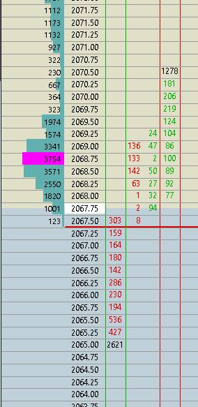 hello, This seems complicated to explain in words but I hope it's understandable Is it possible to show / implement the last trade prices (in separate DOM columns BID v ASK) at each level until price changes from bid to ask? by this i mean, for example - if sellers are hitting the bid at .00 and the buyers are hitting the offer at .01 - is it possible to show the accumulated volume at each price in a column on the DOM until the bid turns from offer back to bid / offer turns to bid back to offer at each price? Say sellers hit bid @.010s - 100, 200, 100 (so will show 400 in bid column 'a'), then 100, 200, 50 buyers hit offer @.01's (so will show 350 in offer column 'b') - resetting if each price goes from bid to offer or offer to bid - does that make sense?? - this would not reset after each price change - just after each price was revisited (if changes from bid/offer or offer/bid) kind of like a number bar (at each price) but resets when price changes from bid to offer or orrfer to bid Date Time Of Last Edit: 2015-11-08 14:39:17