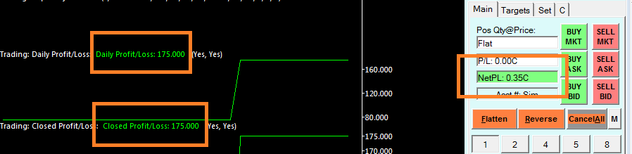 When you disable the option in Chart Trade Settings to display the Net PL, do you see a problem with the Daily Profit/Loss. Daily Profit/Loss show on the Trade Statistics tab for the same symbol? What is the symbol you are trading? We do not have enough information to help with this at this time and we do not see a problem in our testing. Sierra Chart Support - Engineering Level Your definitive source for support. Other responses are from users. Try to keep your questions brief and to the point. Be aware of support policy: https://www.sierrachart.com/index.php?l=PostingInformation.php#GeneralInformation For the most reliable, advanced, and zero cost futures order routing, *change* to the Teton service: Sierra Chart Teton Futures Order Routing |