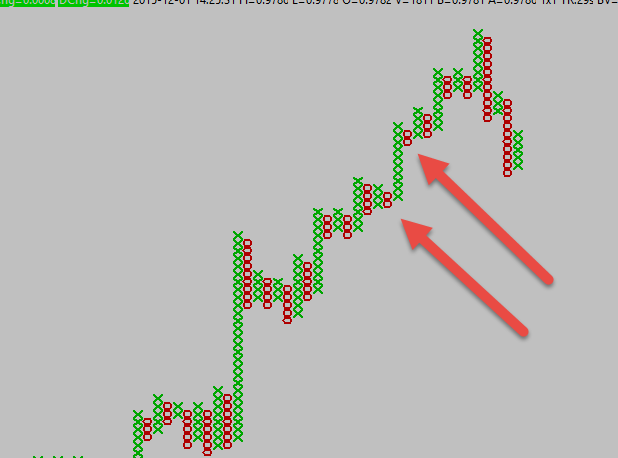 Yes, those settings are correct for a 45° angle. You cannot look at the number of boxes in a column to determine the reversal amount. What you see is normal. Here is the documentation for how the study works: http://www.sierrachart.com/index.php?page=doc/doc_TechnicalStudiesReference.html#s140 If the study were to not allow a reversal until there are the number of boxes in a column which equals the reversal amount, there would never be a reversal under some conditions. It would not make any sense. Sierra Chart Support - Engineering Level Your definitive source for support. Other responses are from users. Try to keep your questions brief and to the point. Be aware of support policy: https://www.sierrachart.com/index.php?l=PostingInformation.php#GeneralInformation For the most reliable, advanced, and zero cost futures order routing, *change* to the Teton service: Sierra Chart Teton Futures Order Routing Date Time Of Last Edit: 2015-12-02 19:16:51