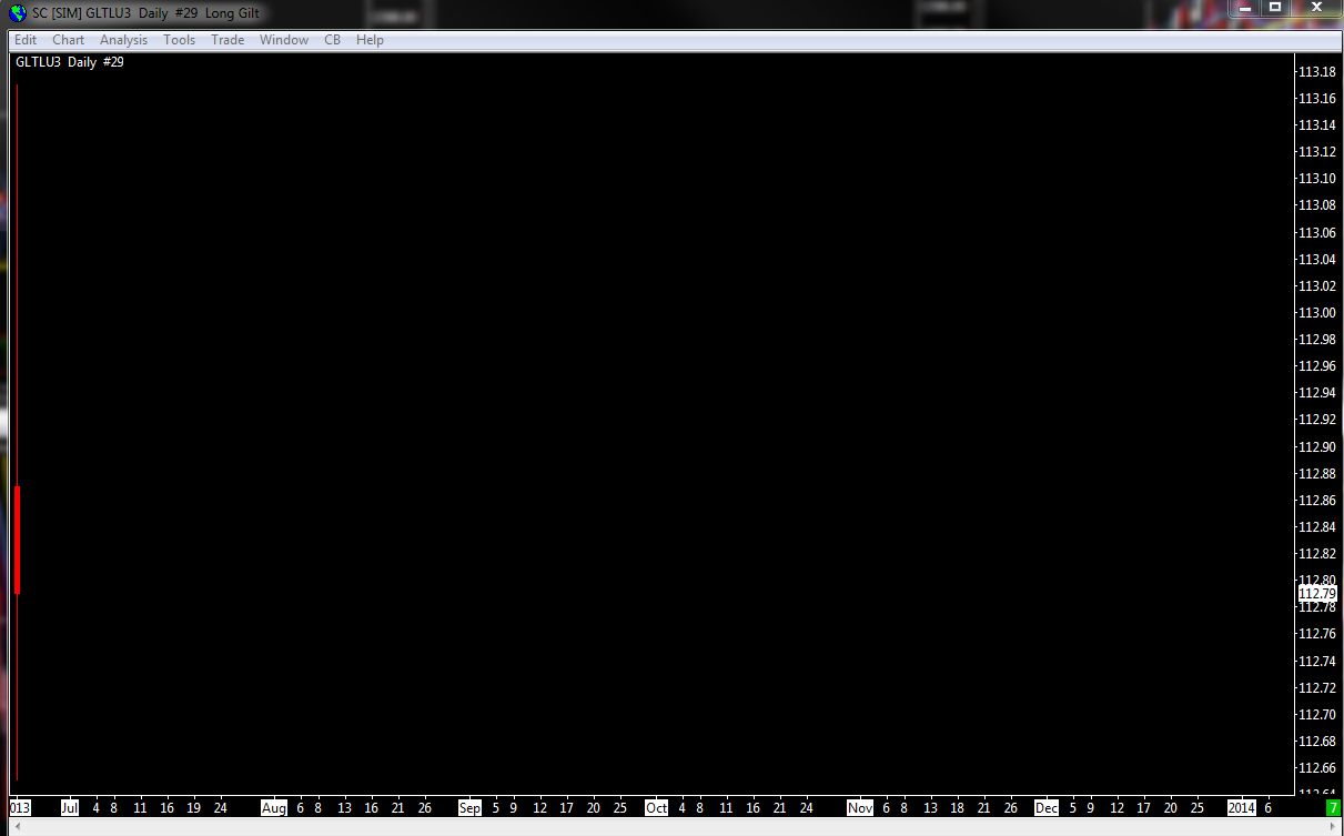 Dear Sirs, for every product the historical Charts are working perfect, for the LIFFE contracts as well, just not for the Long Gilt GLTLU3 (LIFFE). This contract is the only exemption. Please see the pic attached. It seems, as would the time at this contract "counts" from the day today in the future. You can see at the end of the time line the year "2014". Do have an idea how to make this chart work as all the others do? Would be great! Thank you very much for your support and time in advance and have a nice weekend! Regards, Alexander |