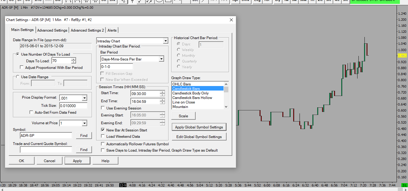 See attached picture of the Chart Settings for this symbol and underneath the 1 min chart plot. I only want this to plot on the chart for the day session ie 9:30am to 4:05pm USA ET. Why is it continuing to plot time periods outside of this range? I do not want plots outside the day session as they are erroneous - as you know these market statistics symbols are based on the Cash Indexes which are only open for the day session, so any data outside this time period is erroneous and often mucks up the vertical scaling. In fact when I set the Chart Settings to the day session only and then save it, I get the chart plot shown. If I then go back into Chart Settings the day session times have been over-ridden and now show 18:00 to 17:15 (which is why the erroneous data is showing). But why is the time session being automatically changed? I have checked the Global Symbol settings and they are correct. |