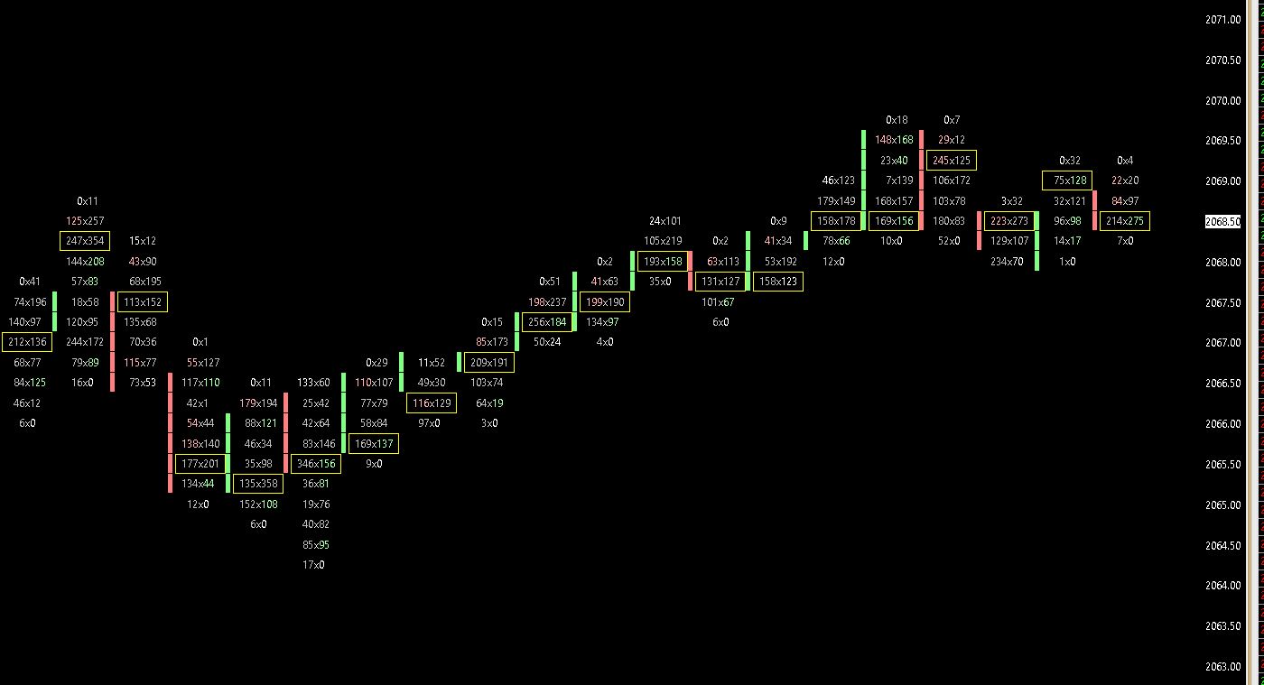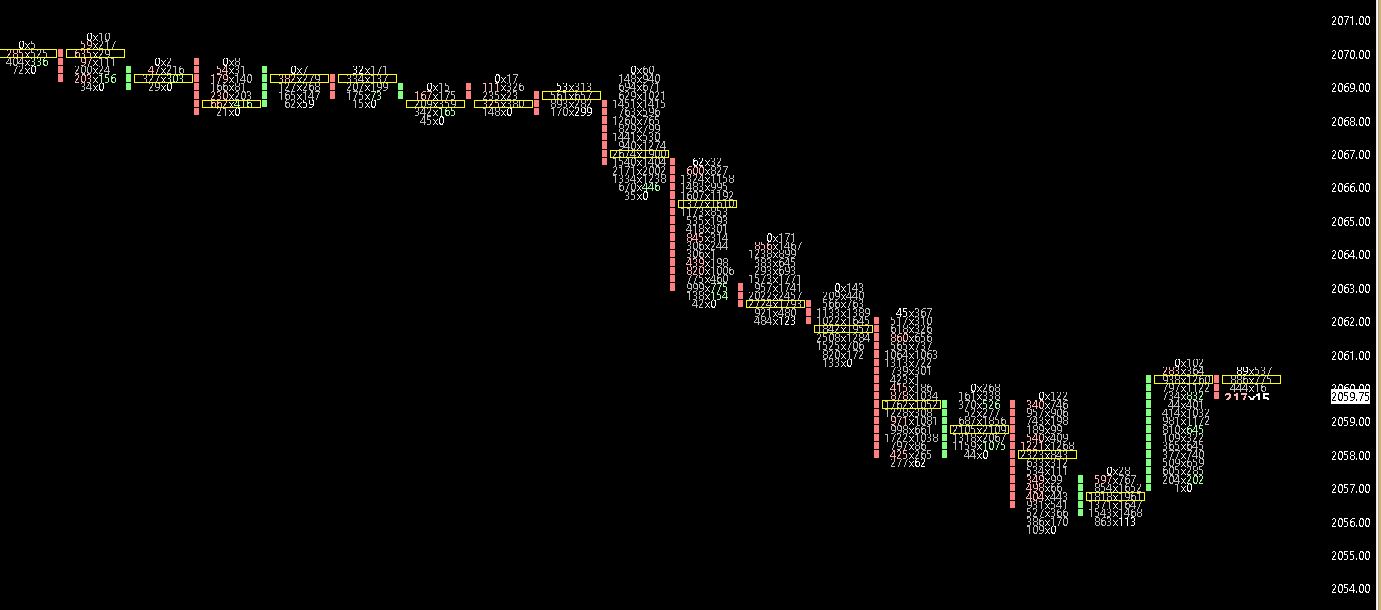 Hi, This isn't an issue at all really, purely cosmetic. Is it possible to have the number bars spacing the same irrespective of prices traded on the chart. What I mean is sometimes the number bars appear compact (nice) but other times they appear fragmented. (the spacing inbetween prices appears too much - like when you zoom in using up arrow key). I hope the uploaded images show what I mean. and sometimes when lots of prices are traded in a short period it looks like the extrme file upload - these are 3 minute bars) Also is it possible to widen the number bars -so that it's not necessary to zoom out too much to view the numbers? sometimes at optimal zoom the 1000's are not fully visible. CHeers Date Time Of Last Edit: 2015-12-17 15:01:11