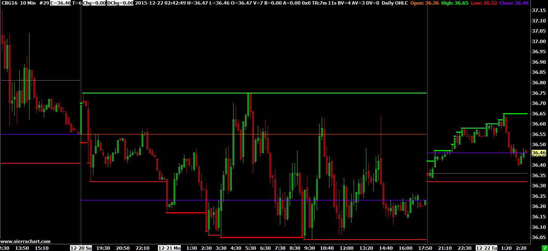 | Also, the Time Line study can easily be modified with different time mapping modes to accomplish this as well. We can even add settings to control what days of the week that it applies to. Sierra Chart Support - Engineering Level Your definitive source for support. Other responses are from users. Try to keep your questions brief and to the point. Be aware of support policy: https://www.sierrachart.com/index.php?l=PostingInformation.php#GeneralInformation For the most reliable, advanced, and zero cost futures order routing, *change* to the Teton service: Sierra Chart Teton Futures Order Routing |