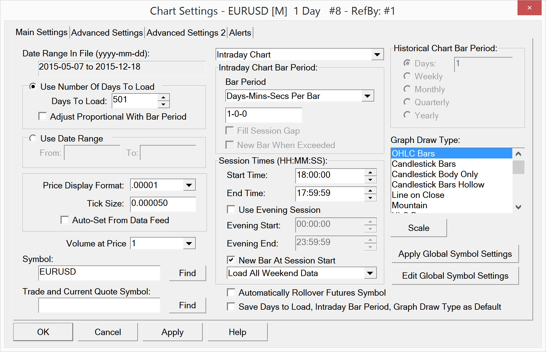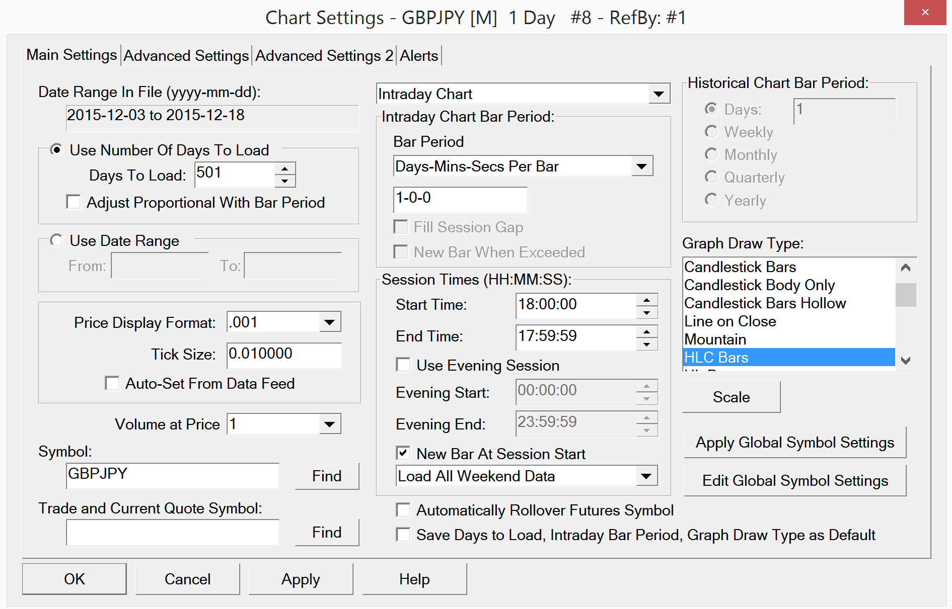 In the documentation, it said that "Sierra Chart Real Time and Historical Forex and CFD Data Service" is included in the standard packages. But why I can only download two weeks of data from 12/3 to 12/18 on daily chart for GBP/JPY? and only 5/2015 to 12/2015 for EUR/USD?