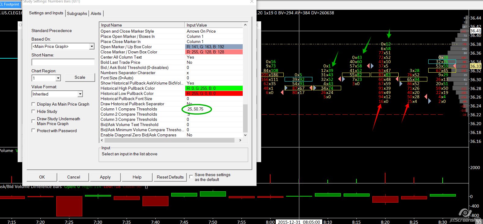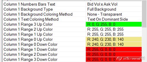 hey im trying to set a threshold on the number bars using color text on dominant side but no matter what i set the threshold too it just colors the higher number side one color and lower side another . i want to set it to see large imbalances like 100 x 25 ( example ) but this is coloring all of them i also tried to to use diagonal coloring but the thresholds dont seem to work either , i have read the documentation a bunch of times so please help me out , thanks |