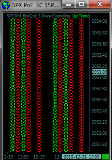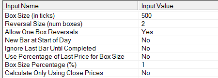 Hi, My SPX P&F chart has issues after recent update. It was a 5 point box, 2 box reversal. Now the X's and O's are tiny.. (like 5 ticks) regardless of what i set the tick amount to. previously, 500 ticks in box size gave me what i was looking for. i'll post a couple images & settings in hopes you can tell me what the issue is. thx |