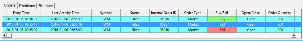 Hi, Those two settings I left them as yes as I can have this system set up to place limit orders, which I most likely might be re-enabling again tomorrow. I am not sure why canceling working orders would affect it though? The original market order was executed 13 seconds earlier, which made it extremely odd. I might add that I changed it to "signal only once per bar" only after this glitch happened, as I thought that this switch only affected opposing signals (e.g. a buy and sell signal both triggering). I switched it on straight away before I re-enabled auto trading in case the system started to sell 300 every 10 seconds which would have being an issue. I only have the one system running for this one instrument, there are no other spreadsheets which are functioning except for a daily bars one which is on a different instrument and different chart book, so I don't think there was any sort of clash in terms of multiple signals. Date Time Of Last Edit: 2016-01-06 20:45:07