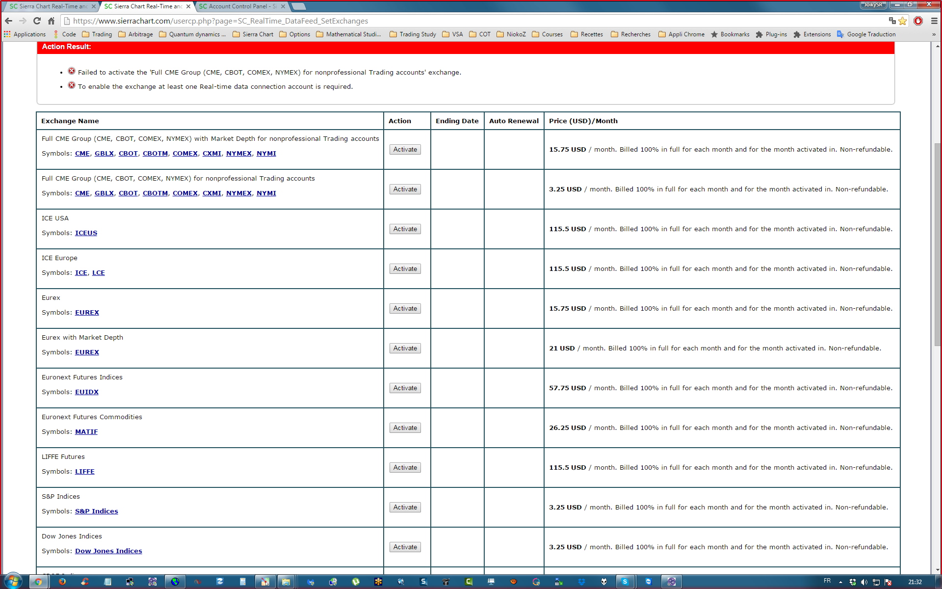 thanks, i do everything, i have my own account of sierra : I want to buy data feed : CME group for buy sp indice after but i have this message when i want to buy CME group (see photo) |