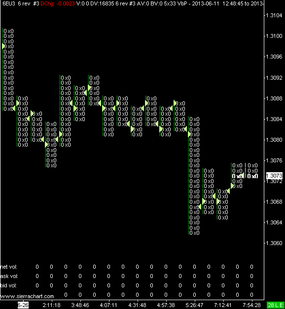 Hi, The page is nothing new to me and 1 tick is selected from long ago.. The problem occours only in 6EU3 contract. The 6EU3 behaves normally.. Please look also into the following link of 6EU3 6 tick reversal chart which shows "zeros" - no data !!! I believe that the problems are related.. http://www.sierrachart.com/image.php?l=1372222895377.png There is no way I can work in this situation.. BR, Avi |