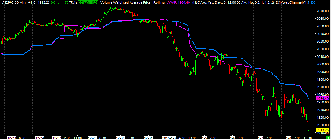 note the jump in the pink line on the 27th of december pink line is built in vwap-rolling study blue line is ECIVwapChannel in user contributed studies |