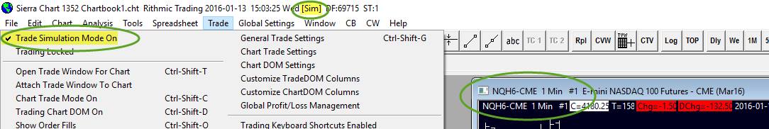Hi, I just started using SierraChart with my new broker AMP with data feed from Rithmic. Unfortunatelly even if I check "Trade Simulation Mode On" I don't see the prefix [SIM] on chart next to the symbol. I can see [SIM] only in title of Sierrachart window. You can see the details on the picture which is attached. Than you Vasek |