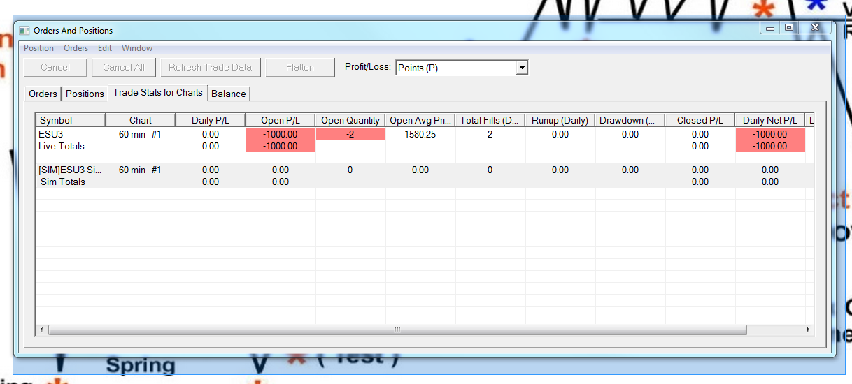 Please follow the instructions in the subsection for the Trade Stats for Charts tab titled "Inaccurate Values": https://www.sierrachart.com/index.php?l=doc/doc_TradeStatusWindows.html#ChartTradeStatsTab Sierra Chart Support - Engineering Level Your definitive source for support. Other responses are from users. Try to keep your questions brief and to the point. Be aware of support policy: https://www.sierrachart.com/index.php?l=PostingInformation.php#GeneralInformation For the most reliable, advanced, and zero cost futures order routing, *change* to the Teton service: Sierra Chart Teton Futures Order Routing |