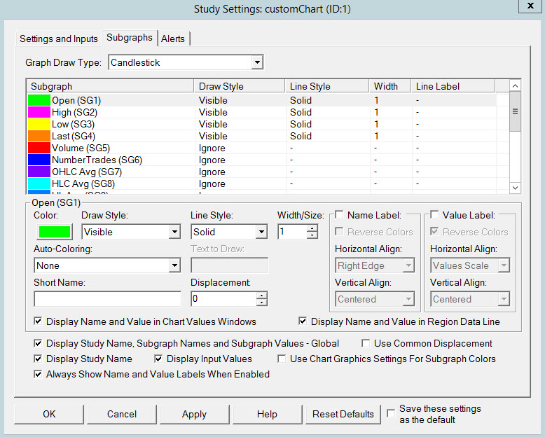 SC Team - At present I can select "blank" for graph draw type. On the same note - I am trying to create a custom chart - but there is no "blank" type available for Graph Draw Type ( sc.GraphDrawType ). Would it be possible to add a "blank" type as one of the available values? With the current mode - though I try to "force" ignore for subgraphs - they gets restored back depending on the graph Draw Type. I am unable to select "ignore" for ALL sub-graphs and is the reason for this request. thanks Date Time Of Last Edit: 2016-01-22 20:01:52