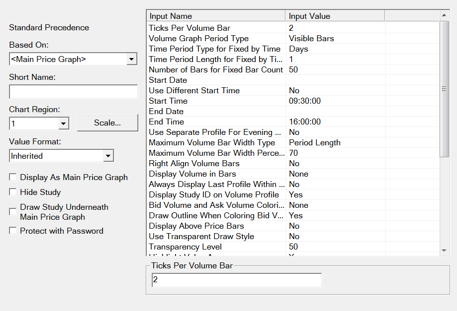 How do you have the Volume Graph Period Type input with the Volume by Price study set?