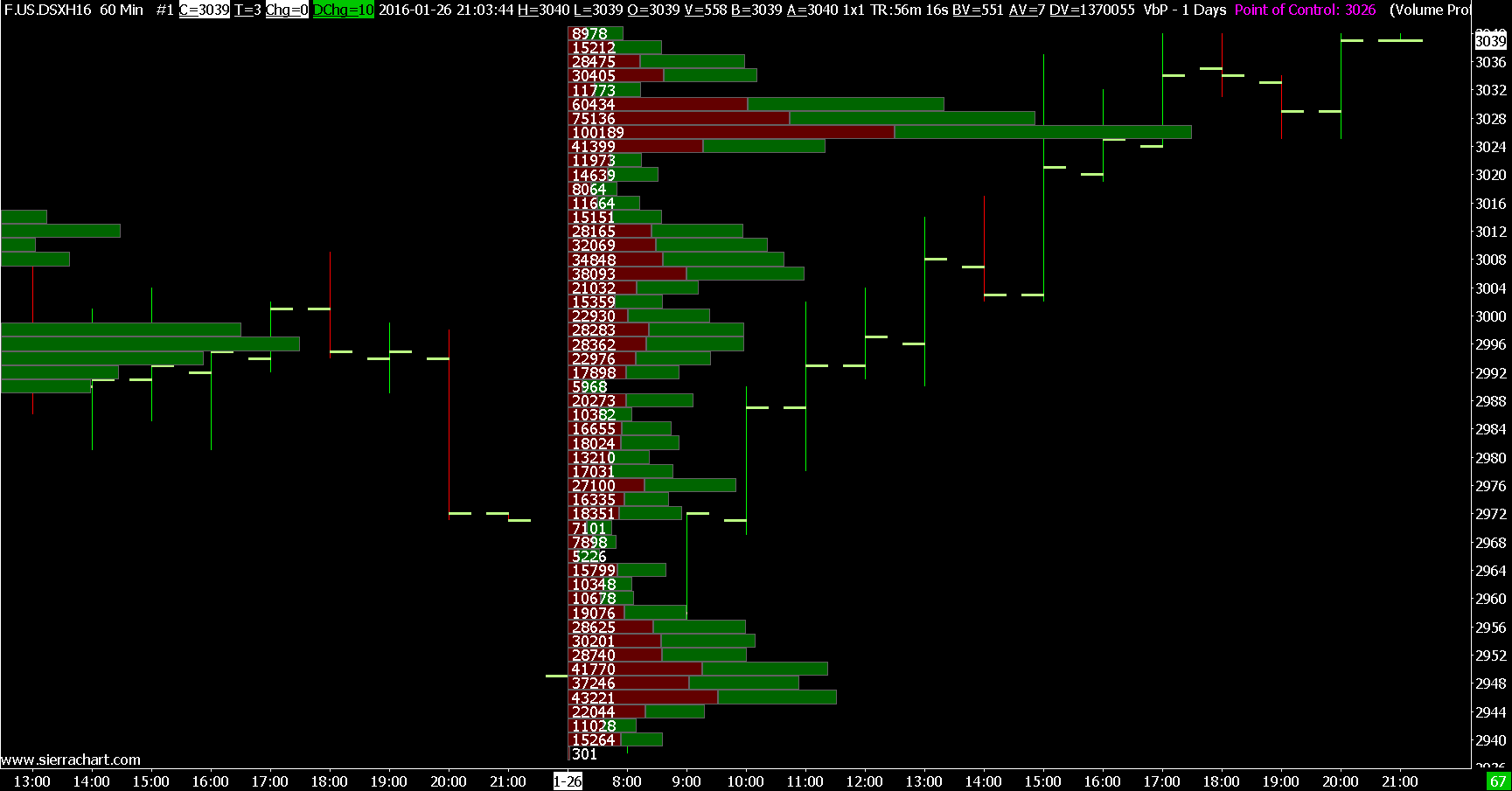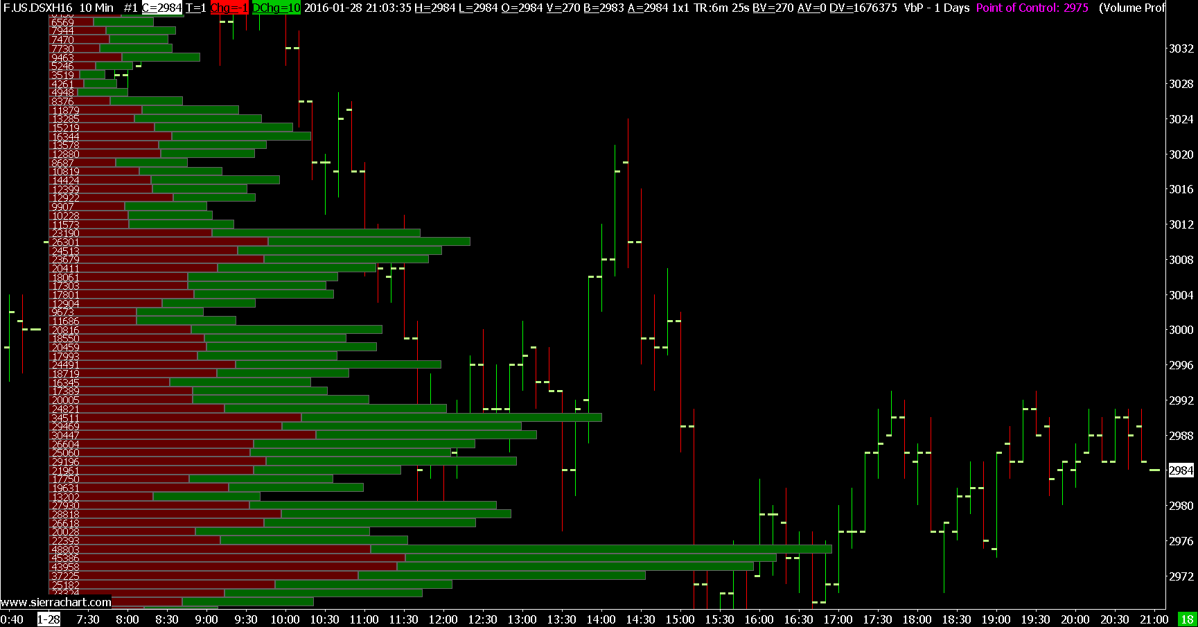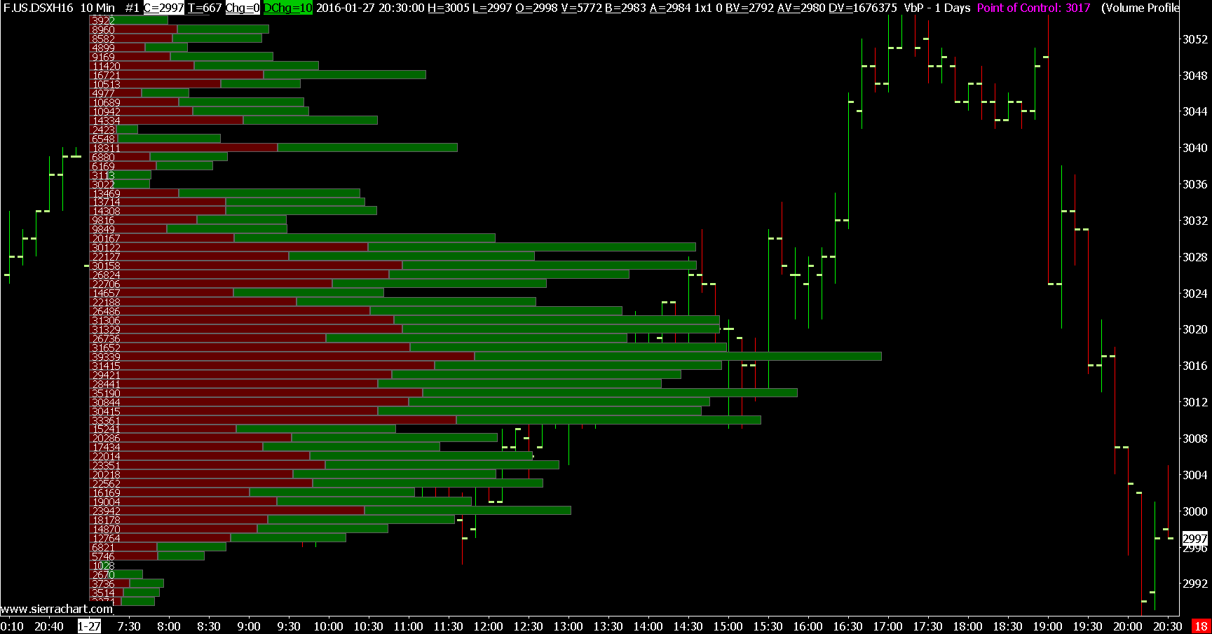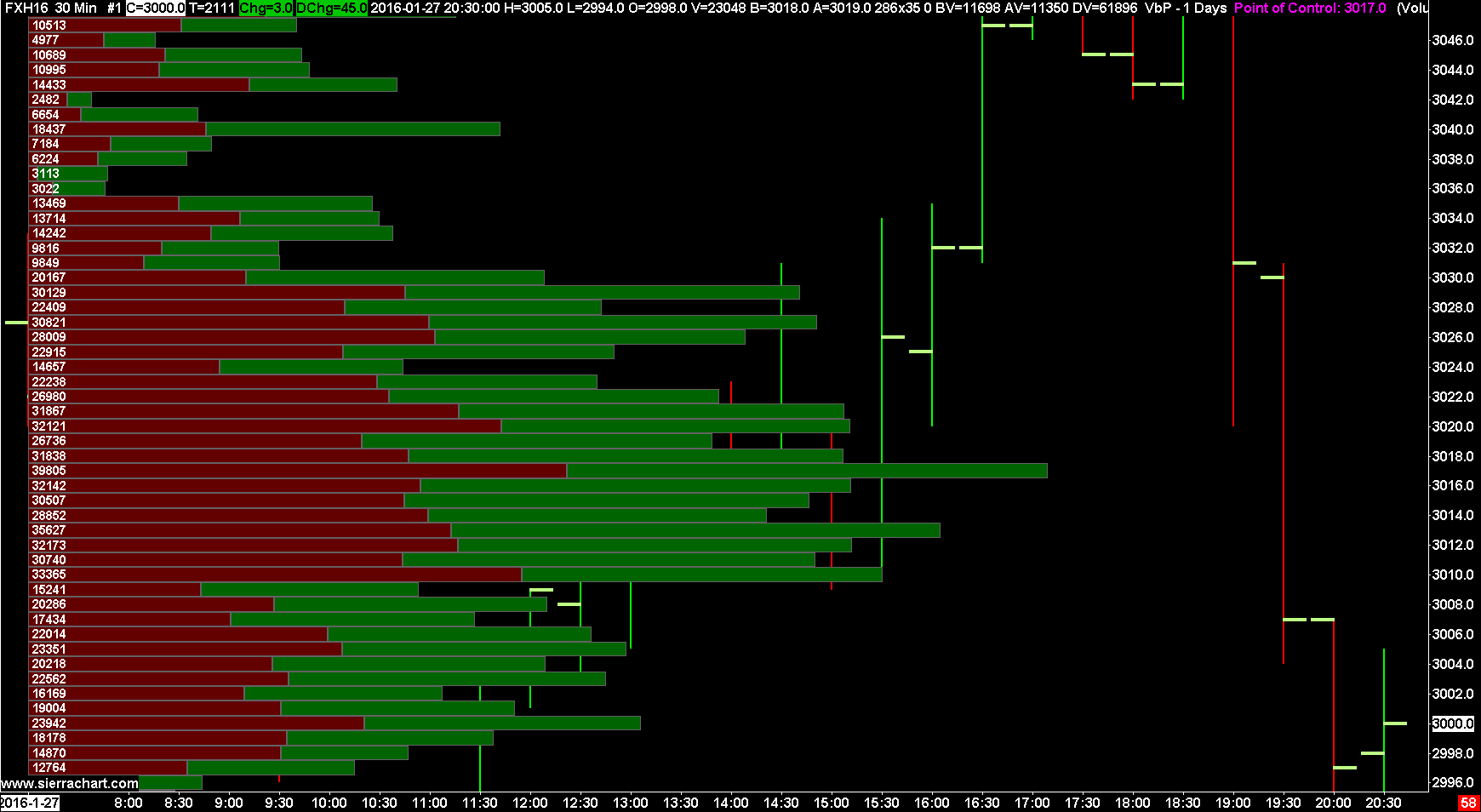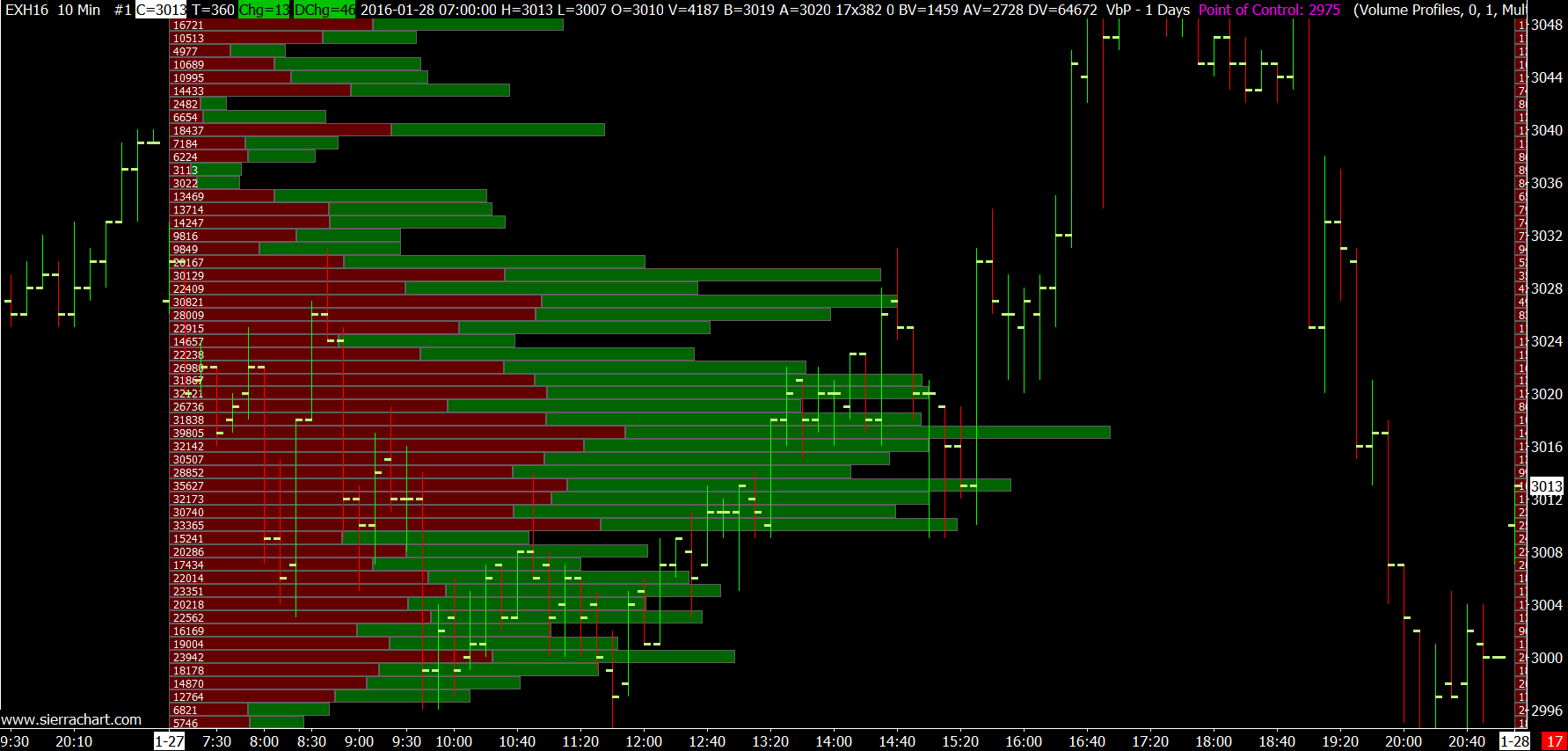 We do see the difference of 40 at the POC level on 2016-01-27 but that is considered acceptable. Sometimes those are inevitable. You cannot expect complete perfection. Sierra Chart Support - Engineering Level Your definitive source for support. Other responses are from users. Try to keep your questions brief and to the point. Be aware of support policy: https://www.sierrachart.com/index.php?l=PostingInformation.php#GeneralInformation For the most reliable, advanced, and zero cost futures order routing, *change* to the Teton service: Sierra Chart Teton Futures Order Routing |
