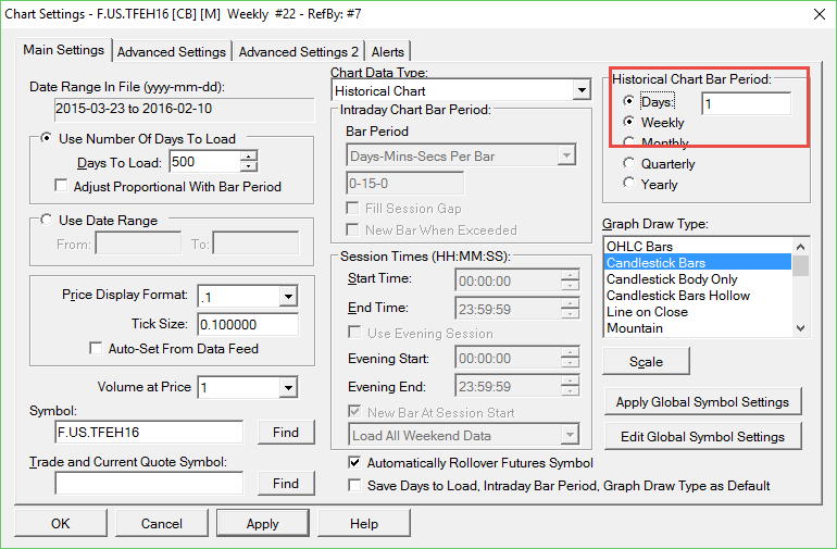 cant switch back from weekly historical chart to daily as the radio buttons are screwed