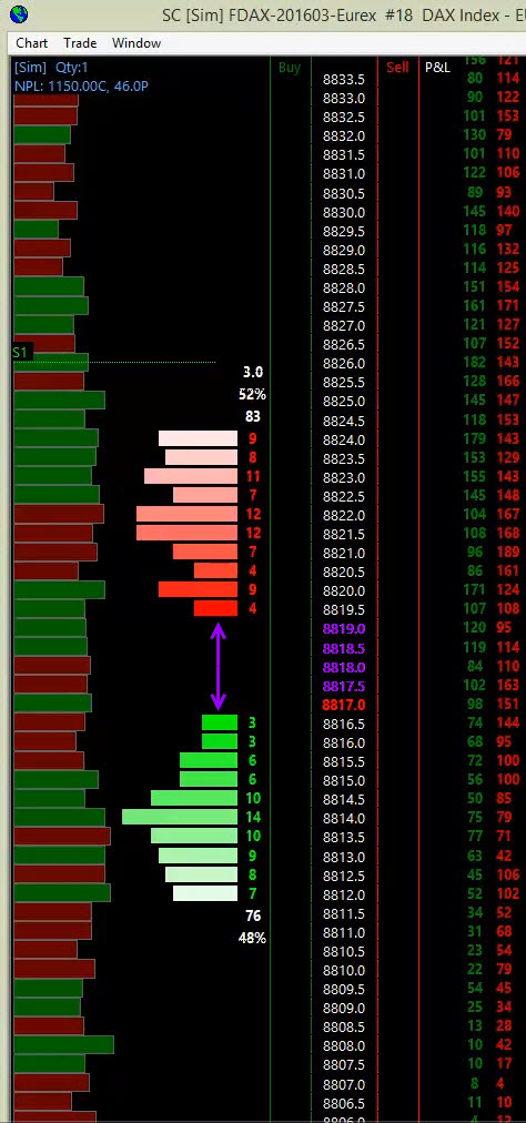 Hi SC. It is possible by Setting or Programming in Trading DOM the spread color represents? I have highlighted that in the image, as I that imagine.