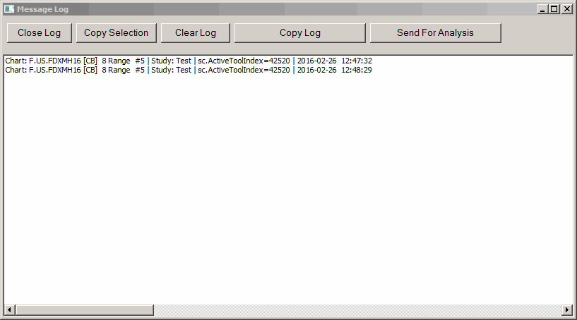 Do not provide us any further information. What you have provided goes far beyond the scope of our support and we did not request it. We will look this over when we have time and see what can be done but do not provide us any further information. Once again we did not ask for this information. At this time, consider what you are doing as unsupported. We will see how we can help, but we are quite busy. We are not sure how soon we can get to this. Sierra Chart Support - Engineering Level Your definitive source for support. Other responses are from users. Try to keep your questions brief and to the point. Be aware of support policy: https://www.sierrachart.com/index.php?l=PostingInformation.php#GeneralInformation For the most reliable, advanced, and zero cost futures order routing, *change* to the Teton service: Sierra Chart Teton Futures Order Routing Date Time Of Last Edit: 2016-02-26 18:41:07