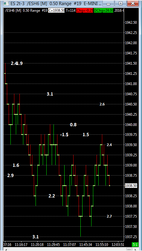 Hi, I have a custom study which prints a numeric reading at the top or bottom of bars on a chart. I have posted two charts. When I look at my charts in their auto pilot mode, I dont see some of these number as they are underneath the bottom of my chart bars. I have to customize the scaling to see them, then when the chart moves to new levels, I have to customize it again to see the new levels. Is there a way to change a setting to "see" all of this on my chart? ES 1 is a normal chart, ES 2 is what I need to see cause the numbers are cut off. Thanks Tom |