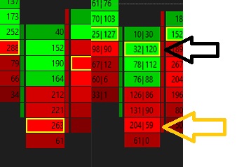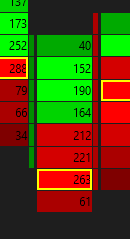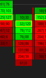 The documentation explains this already: In the case of the Bid Vol x Ask Vol Text type, the price level with the maximum AskVolume for the Numbers Bar column is considered the maximum value and will be highlighted.