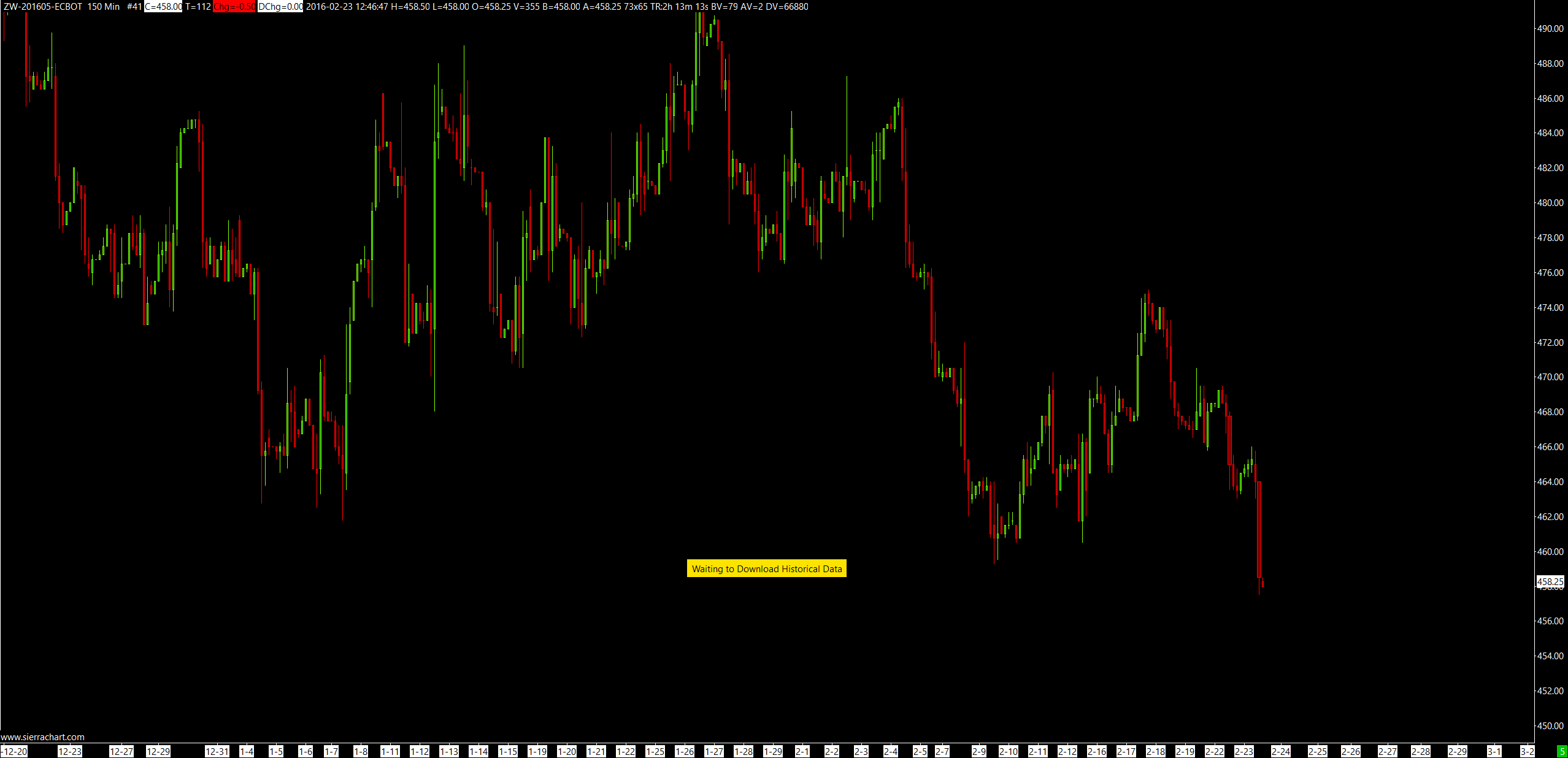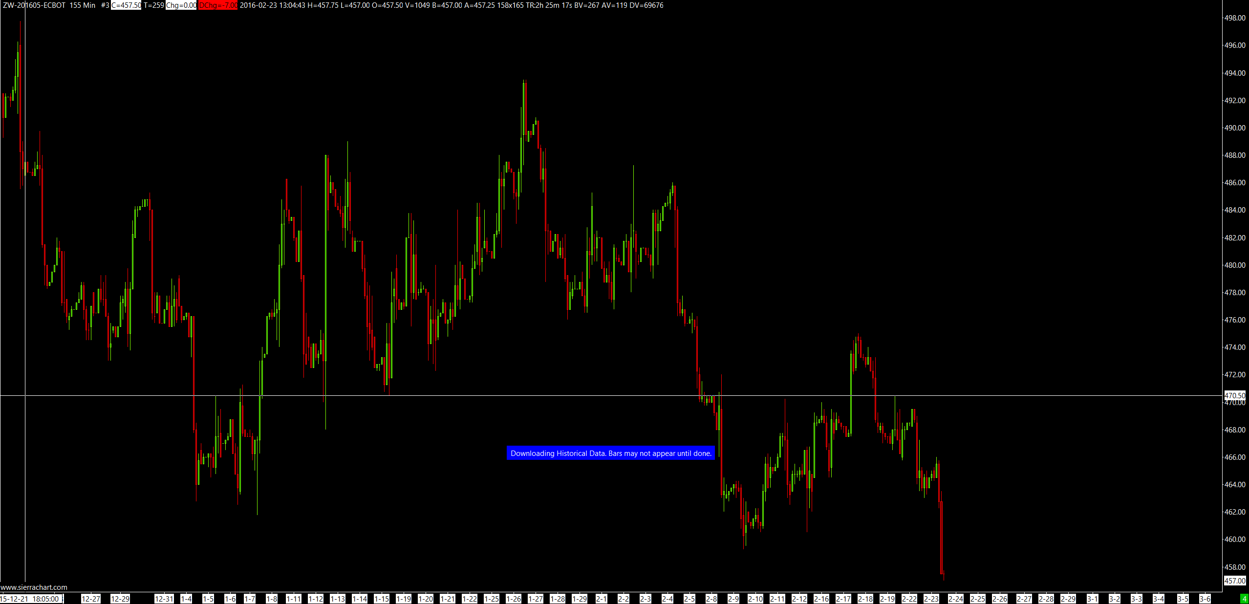 HD Request # 662 | Intraday download COMPLETE for ZW-201605-ECBOT. Completion time: 8m 19s. Unique request ID: 1236 | 2016-02-23 13:09:56 well if the log says it is complete then i am frustrated that it is not displaying the data that it supposedly downloaded. |