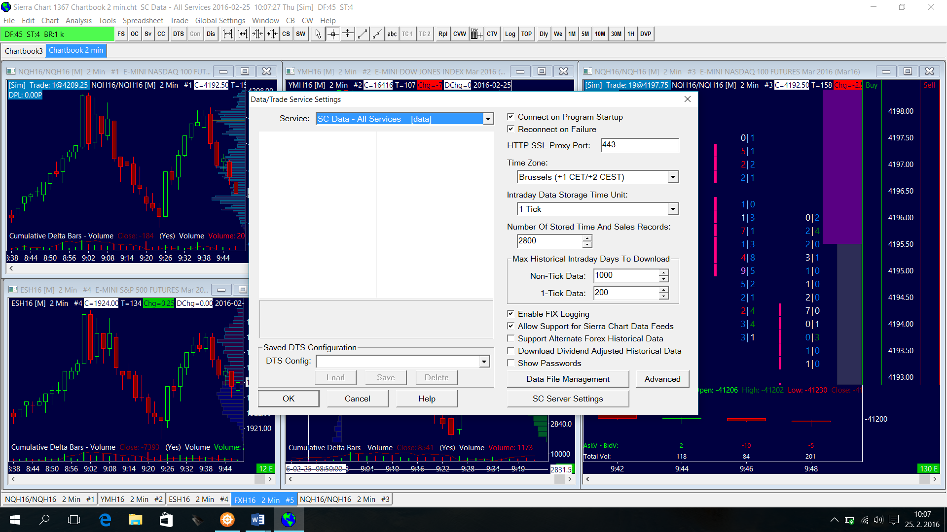 Hello Support Center, I have purchased tomorrow Sierra Chart Data Feed, but apparently not working. When I turn on the charts, the charts are 15 minute delay and will not move, even in the DOM are not visible limit orders. Setting data feed and sending a chart in the attached picture. |