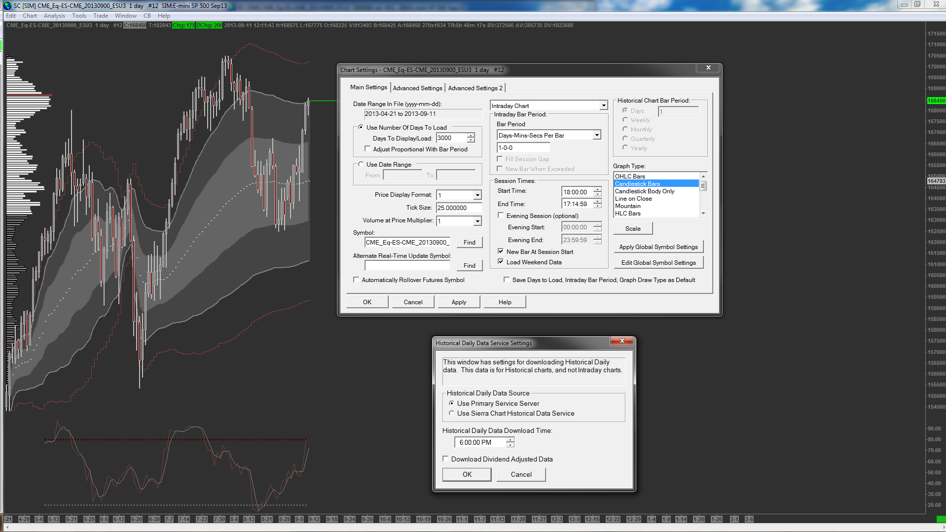 Select Global Settings >> Data/Trade Service Settings >> Historical Data Service Settings. Enable the Use Primary Service Server option. After this, you can update all of the Historical Daily charts by selecting Edit >>Download Data for All Historical Charts. Sierra Chart Support - Engineering Level Your definitive source for support. Other responses are from users. Try to keep your questions brief and to the point. Be aware of support policy: https://www.sierrachart.com/index.php?l=PostingInformation.php#GeneralInformation For the most reliable, advanced, and zero cost futures order routing, *change* to the Teton service: Sierra Chart Teton Futures Order Routing Date Time Of Last Edit: 2013-09-11 22:22:48