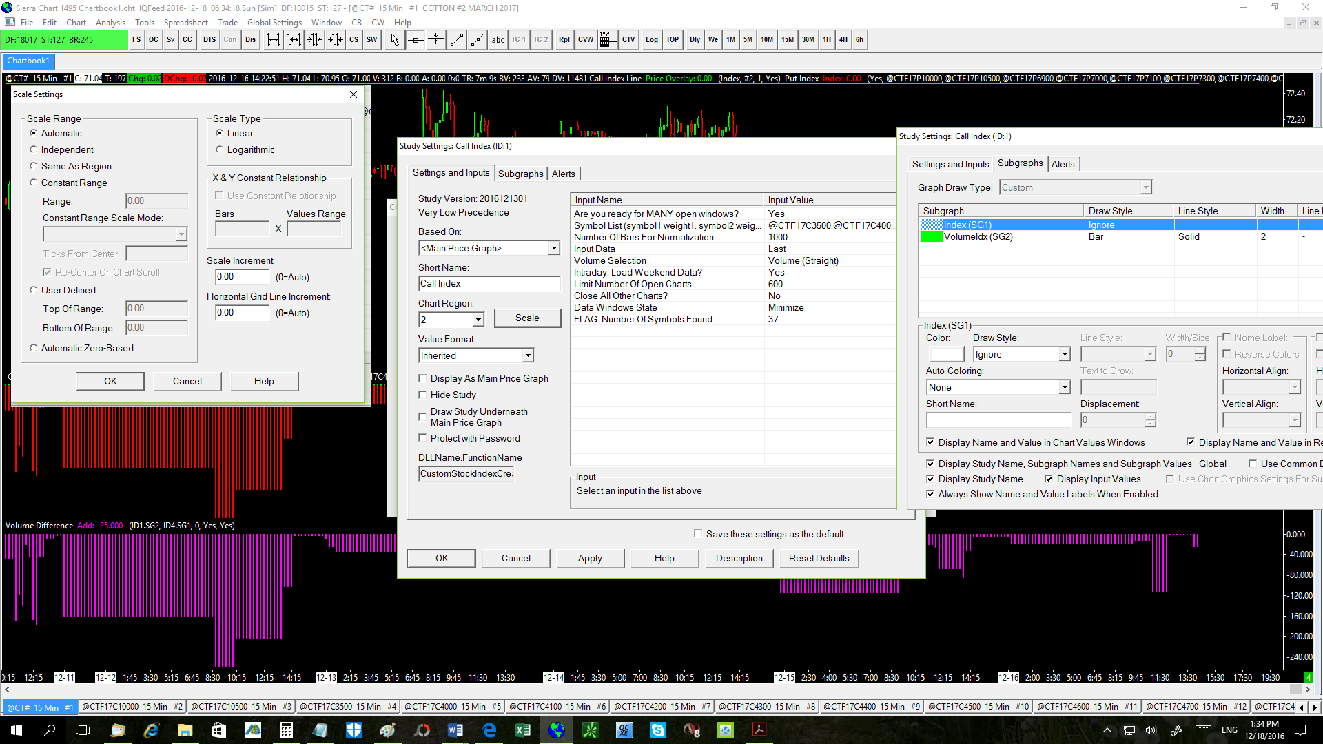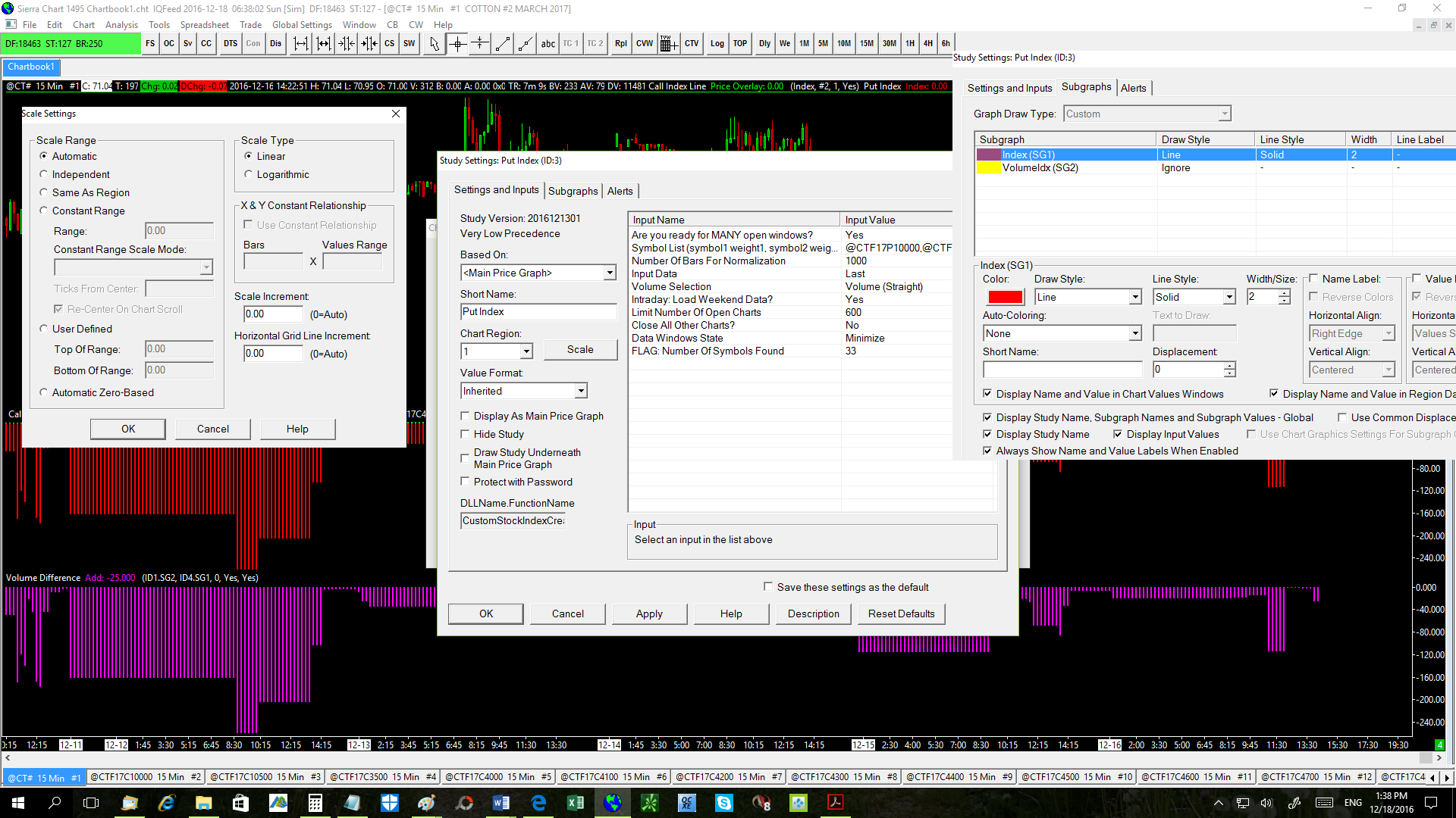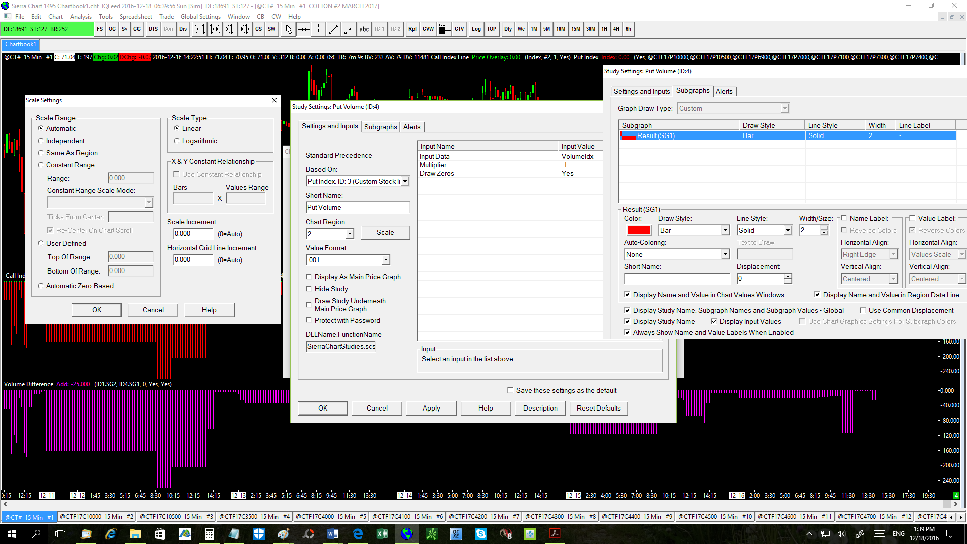 thanks for the update, i think i have a problem in installing the indicator , when you said "Study Subgraphs Add: Short Name: Added Volumes, Chart Region 3, Scale: Automatic, Input Study 1: Call Index: Volume, Input Study 2: Put Volume: Result, Offset: 0, Draw Zeros: Yes, Perform Add With Zero Value: Yes. Subgraphs Tab: Purple, Bar, Solid, 2." i didn't find how to do that , Input Study 1: Call Index: Volume, Input Study 2: Put Volume: Result, Offset: 0, there is no input study only input data or based on. |