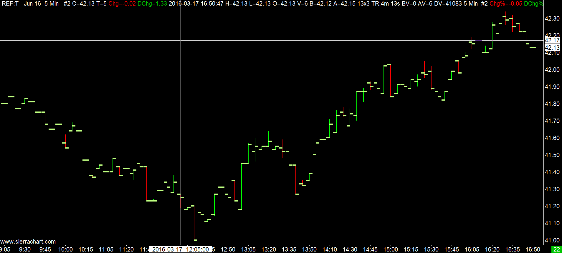 We see the data: http://www.sierrachart.com/image.php?l=1458233476980.png It appears you are not using the right symbol format. Perform a Full Reset of the Symbol Settings as explained here: https://www.sierrachart.com/index.php?page=doc/doc_GlobalSymbolSettings.php#FullResetSymbolSettingsSteps After this is done open a new chart through the File >> Find Symbol and use the symbol listed. Sierra Chart Support - Engineering Level Your definitive source for support. Other responses are from users. Try to keep your questions brief and to the point. Be aware of support policy: https://www.sierrachart.com/index.php?l=PostingInformation.php#GeneralInformation For the most reliable, advanced, and zero cost futures order routing, *change* to the Teton service: Sierra Chart Teton Futures Order Routing Date Time Of Last Edit: 2016-03-17 16:53:03
