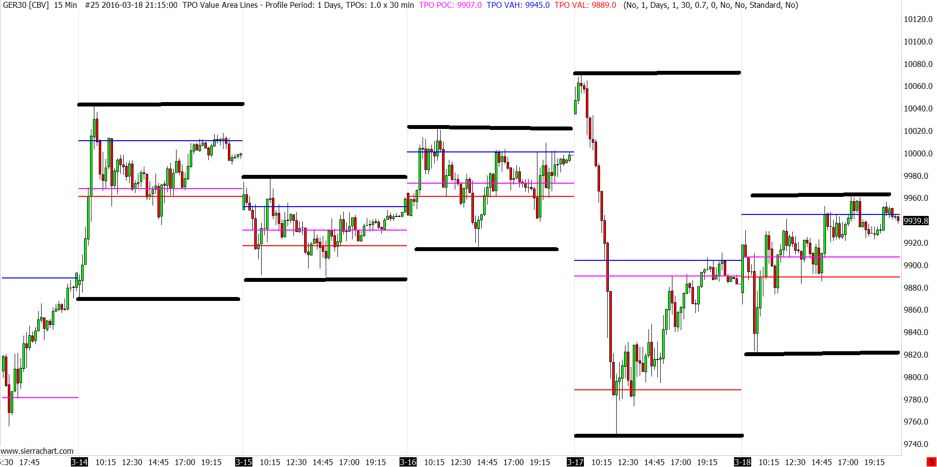 Hello everyone, can somebody please help me with such a simple issue I am even embarrased to ask. I want simple daily high low lines displayed exactly as these value are lines. No lines overnight or verticaly shown or even to be drawn while they changed with each intraday bar. These are value area lines and look great. http://www.sierrachart.com/image.php?l=1458557692433.png Now I want daily high and low like this added (see attached pic). I draw black lines that draw only for that day. How can I do that? Thank you! |
