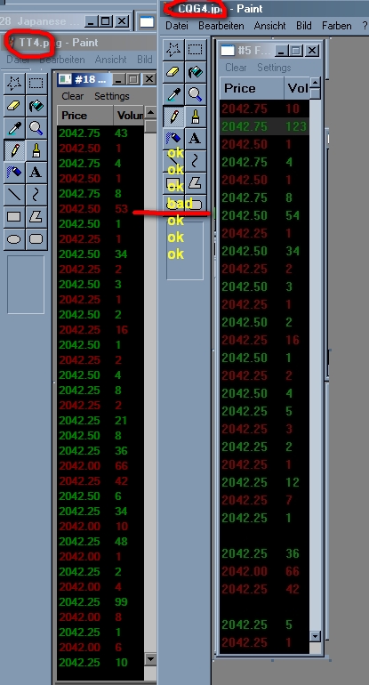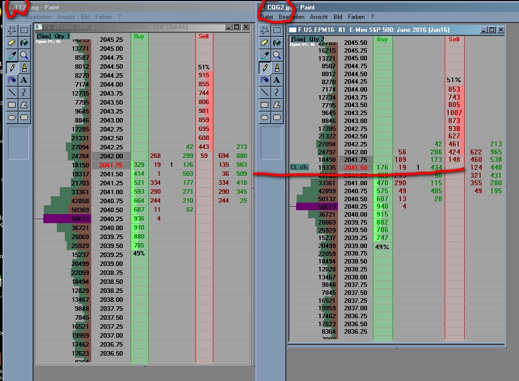 Hello Sierra team, I am comparing the volume prints for S&P500 futures on my TT Sierra instance with the Sierra CQG instance. There seems to be a bug or a data feed issue, where Ask volume is counted as Bid volume or vice versa in the "Current Traded Bid Volume". I cleared the Current Traded Bid (ASk) Volume column simultaneously and after a while took a screenshot of both DOMs. Small differences are normal, but I hope you see the major discrepancies. I dont know if CQG or TT is the culprit. CQG seems to show fewer big Volume blocks (>100) in the T&S than TT. CQG probably slices the Volume differently to TT. I dont know if this is relevant for the above issue - it should not make a difference for the Sum in the Current Ask or Bid column. I hope my screenshots explain the issue. (the same test for BUND/eurex revealed no differences between TT and CQG data feed) TY Date Time Of Last Edit: 2016-03-22 21:54:07