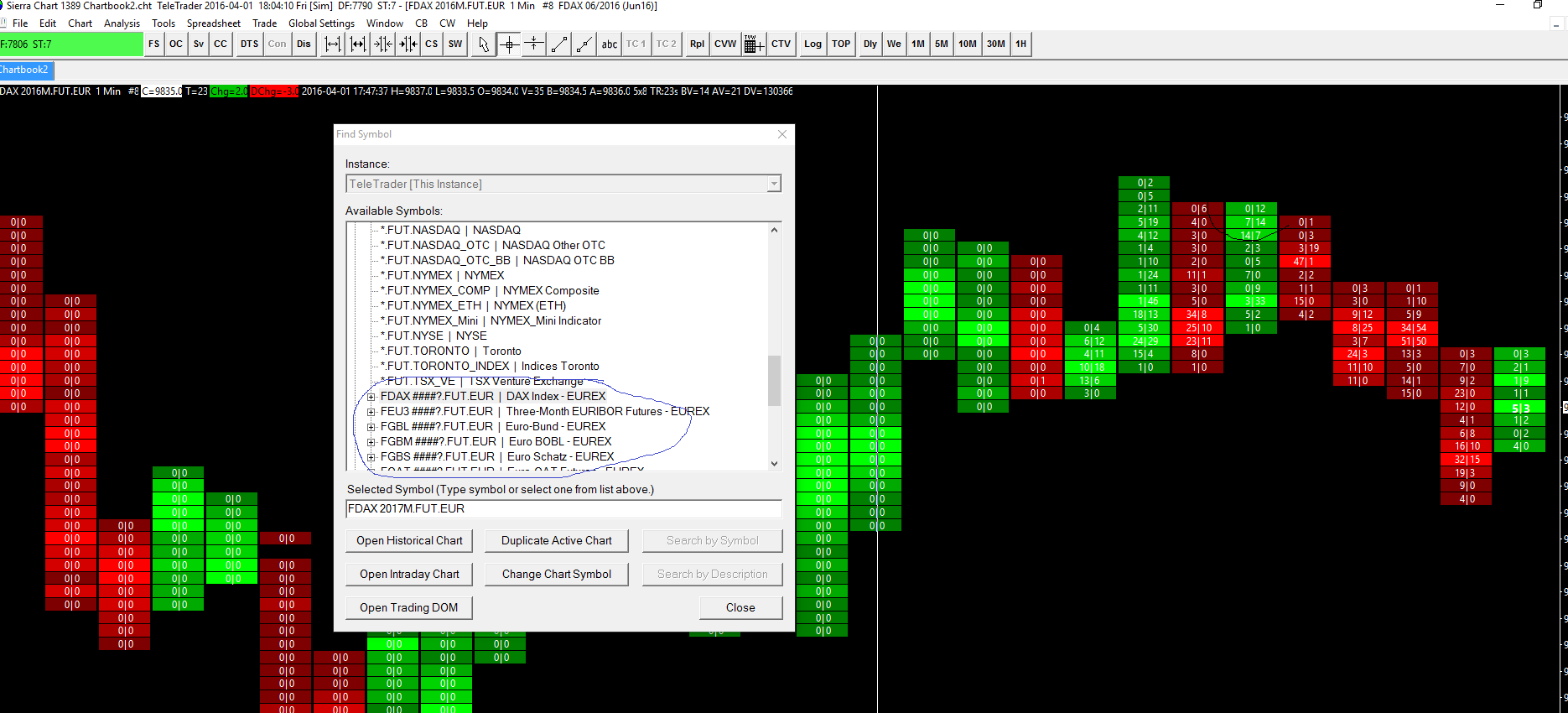 You need to perform a search for those symbols through the Find Symbol window. Here are the instructions starting with step 10: https://www.sierrachart.com/index.php?page=doc/TeleTrader.php#SetupInstructions Sierra Chart Support - Engineering Level Your definitive source for support. Other responses are from users. Try to keep your questions brief and to the point. Be aware of support policy: https://www.sierrachart.com/index.php?l=PostingInformation.php#GeneralInformation For the most reliable, advanced, and zero cost futures order routing, *change* to the Teton service: Sierra Chart Teton Futures Order Routing |