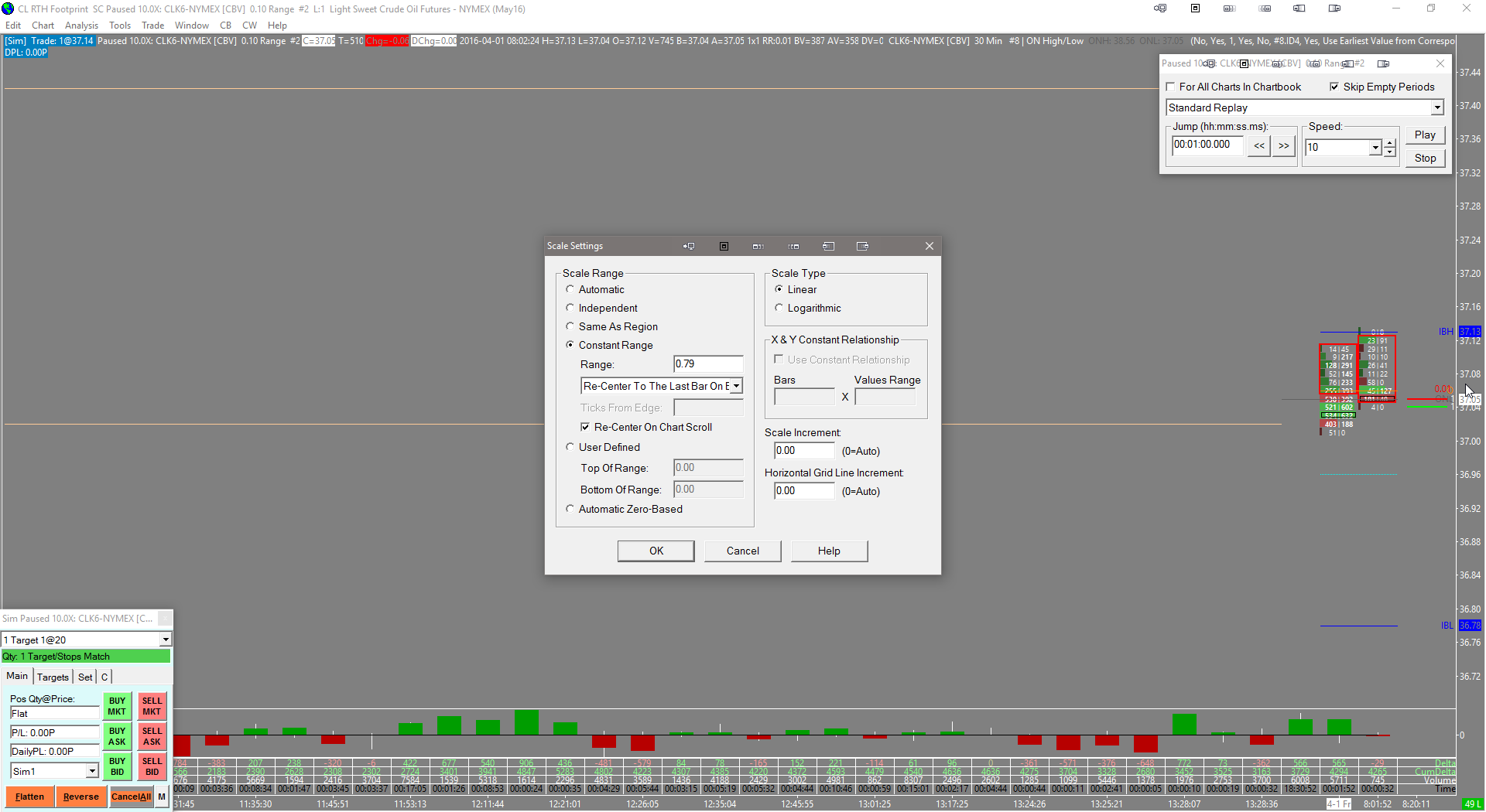 i have noted in this thread/post in #2 what is going on. it seems that its just with the numbers bar study applied because i dont seem to have the issue on a volume bar chart: numbers bars POC not filling cell | Post: 86178 im not sure if this is a scaling issue or an issue with the numbers bar but if there is a gap in the chart and we open out of the view of the window from the previous close the chart wont go to the new opening price on the open print but it will focus to price when the second bar on the chart is printed. i have shown my scaling settings in case you need that info to test. |