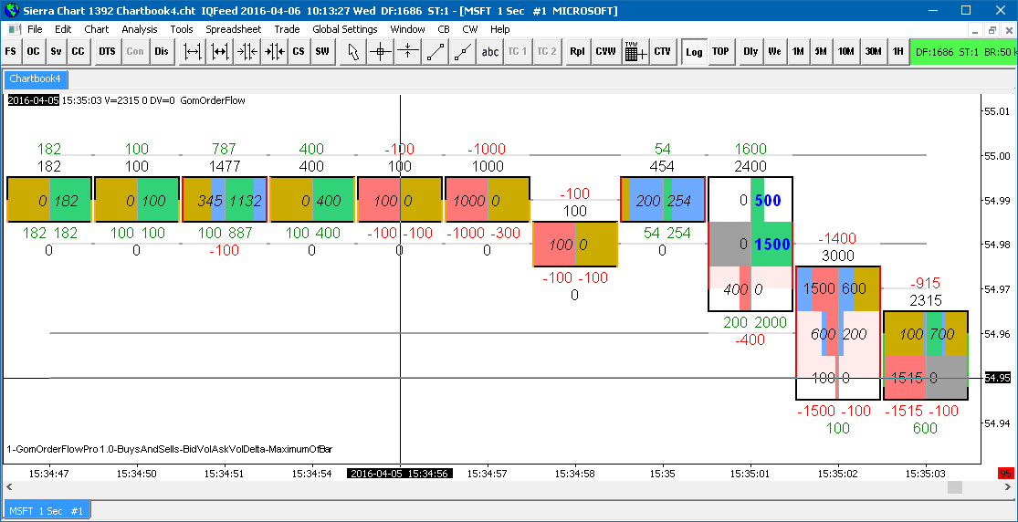 Hi, Here's a couple executions on MSFT, you see they're executed between the best bid and ask. However sierra always reports them as sells Wouldn't it be more appropriate the split the volume on the buy and sell sides ? Datafeed is IQ Thanks |