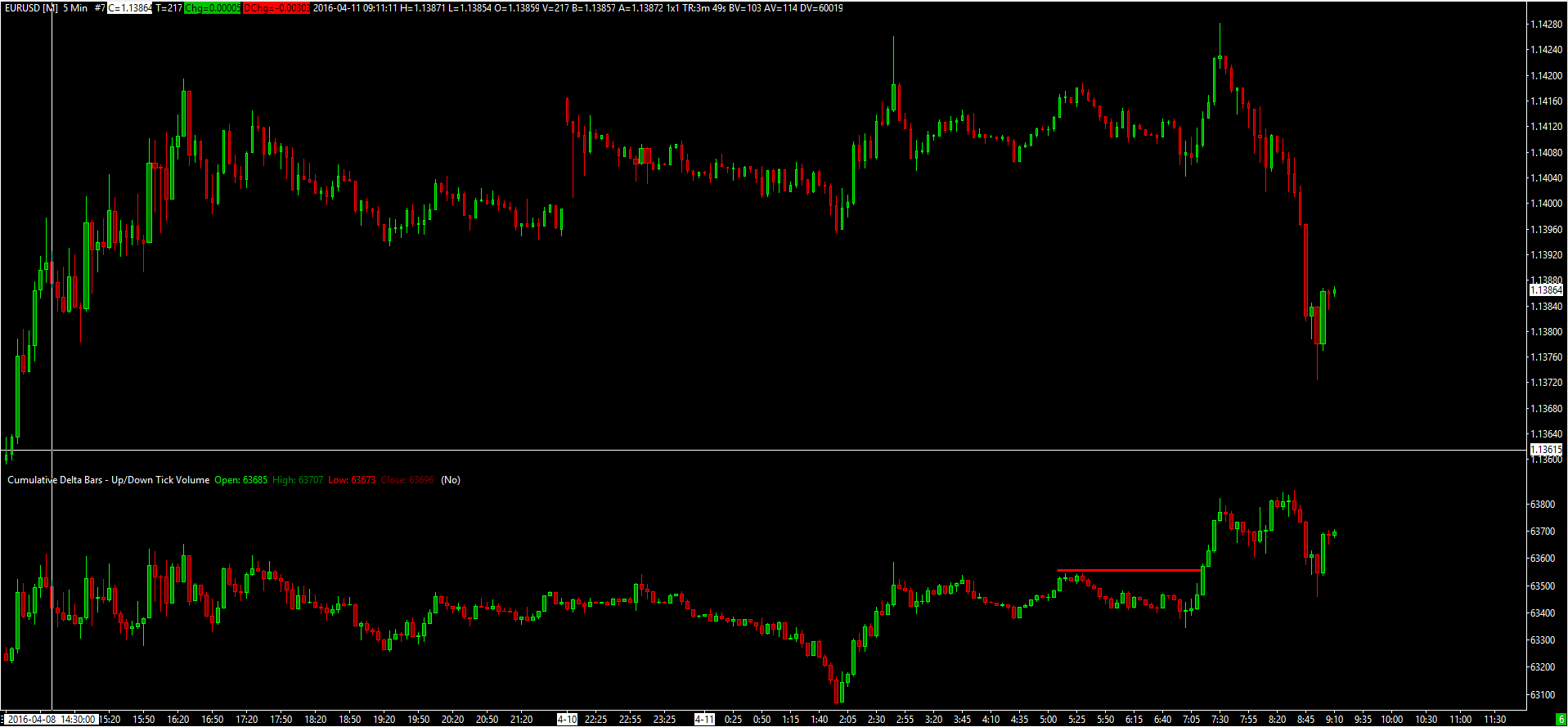 The problem is that the starting Date of the data in the charts do not match. Refer to: https://www.sierrachart.com/index.php?page=doc/doc_TechnicalStudiesReference.html#CumulativeDeltaBarsDifferences Sierra Chart Support - Engineering Level Your definitive source for support. Other responses are from users. Try to keep your questions brief and to the point. Be aware of support policy: https://www.sierrachart.com/index.php?l=PostingInformation.php#GeneralInformation For the most reliable, advanced, and zero cost futures order routing, *change* to the Teton service: Sierra Chart Teton Futures Order Routing Date Time Of Last Edit: 2016-04-11 10:29:47