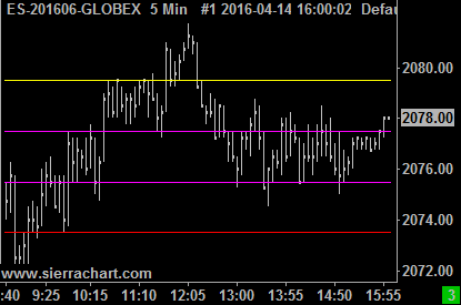 Thanks. You're right, it didn't show it on the intraday chart. I was hiding it before. I changed fill blanks with last value to yes. I was able to get the A up and down horizontal lines to show on my charts automatically. Thank you very much for your help.