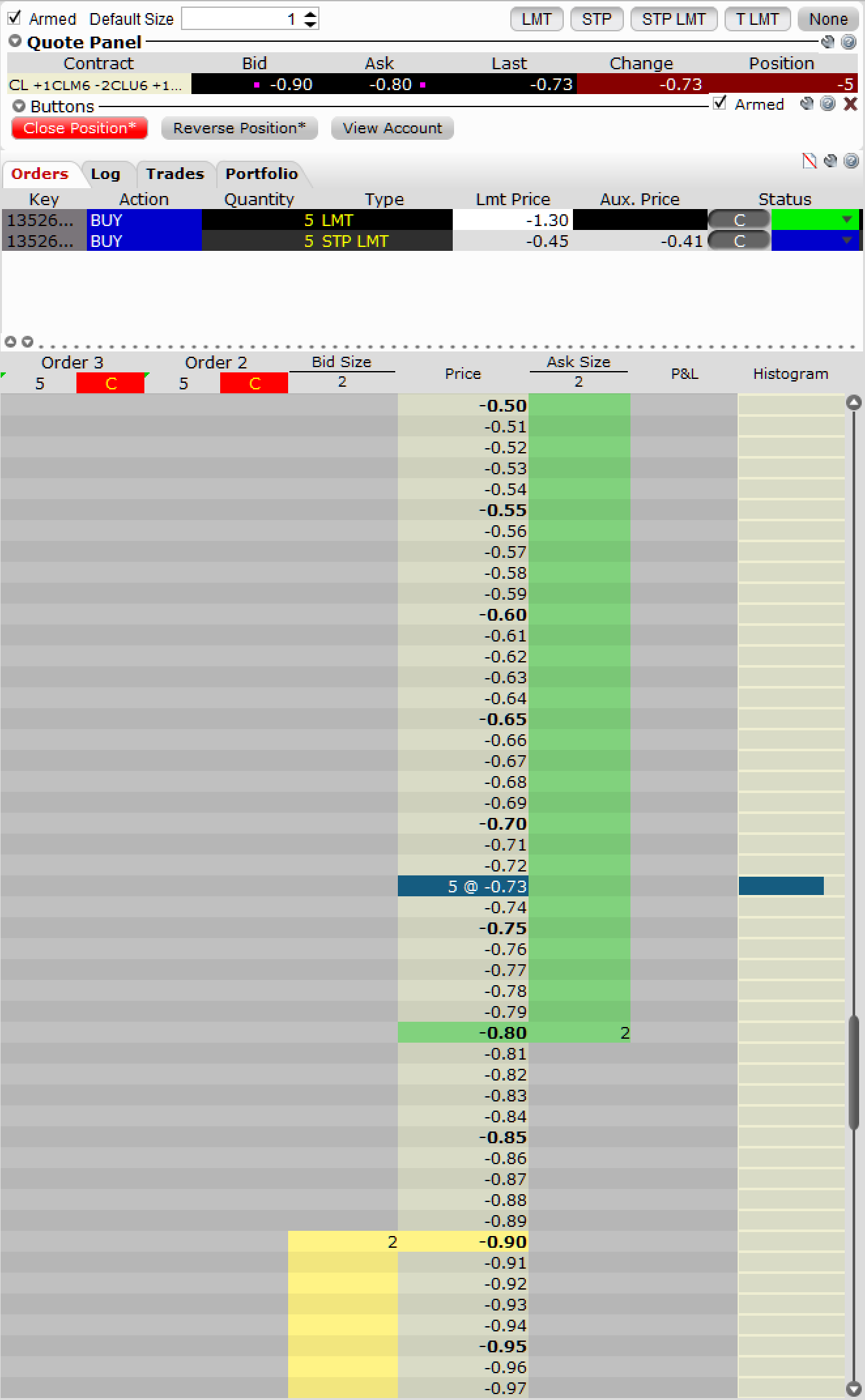 There's basically 3 issues, 2 of which are more important: 1. Numbers bars shows -0.75 but normal chart shows -0.73. 2. Market depth is all wrong (this *might* have to do with implied vs outright prices). 3. The past data issue - which was solved by deleting and redownloading the data (however, this seems like I shouldn't have to do that, but let's forget about it for now). |