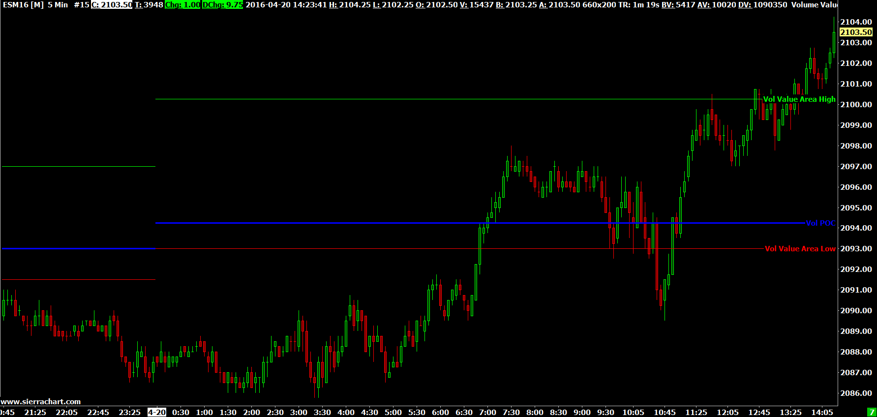 We are referring to the green and red lines. Here is an example: http://www.sierrachart.com/image.php?Image=1461176623305.png Everything looks correct to us. Enable the Name Labels for the Volume Value Area Lines Subgraphs. Here are instructions: Chart Studies: Subgraphs Tab >> Name and Value Labels Sierra Chart Support - Engineering Level  Your definitive source for support. Other responses are from users. Try to keep your questions brief and to the point. Be aware of support policy: https://www.sierrachart.com/index.php?l=PostingInformation.php#GeneralInformation For the most reliable, advanced, and zero cost futures order routing, *change* to the Teton service: Sierra Chart Teton Futures Order Routing  |