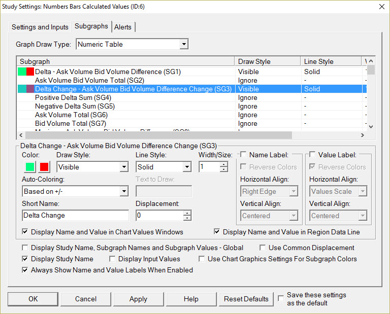 In the next release this study will be added to support this: Study Subgraph as Text Above/Below Bar Although you can not only display it as text but also as bars in another Chart Region using the study. It is very flexible with what it can do. The name is just based upon its default settings. Documentation should be out in a couple of days. Sierra Chart Support - Engineering Level Your definitive source for support. Other responses are from users. Try to keep your questions brief and to the point. Be aware of support policy: https://www.sierrachart.com/index.php?l=PostingInformation.php#GeneralInformation For the most reliable, advanced, and zero cost futures order routing, *change* to the Teton service: Sierra Chart Teton Futures Order Routing Date Time Of Last Edit: 2016-05-07 07:07:24