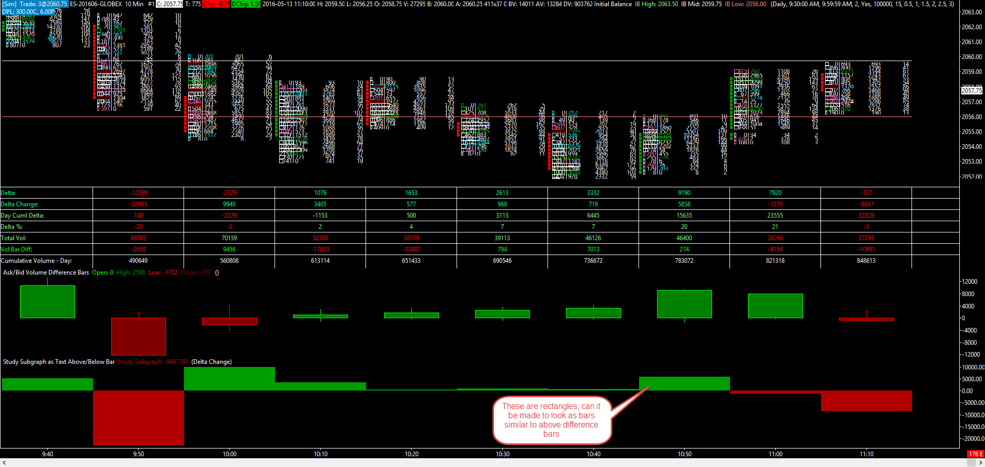 Folks - Is there a way to plot "Ask Bid Volume Difference Change"(SG3) as a bar on the bottom of chart instead of just the values. Pls. see attached |
