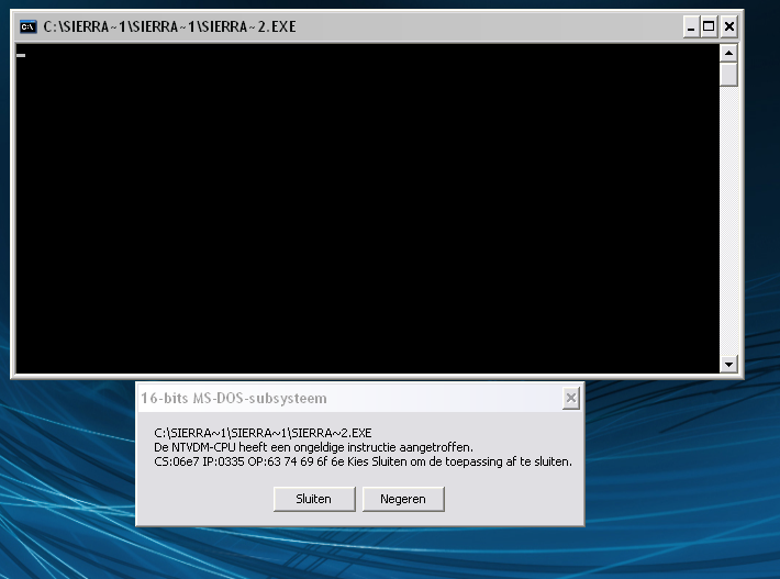 I fixed the problem on my W7 machine, unfortunately I didn't on my XP machine. The system told me, look at the attachment, there is something with a 16 Bit MS-DOS subsystem? What's this??? I tried everything, also uninstalling of everything and deleting also all references in the registry, no success at all. Believe me, I have a lot of experience with computers but for now I don't have a solution. Please, can you help me? Regards, Johan |