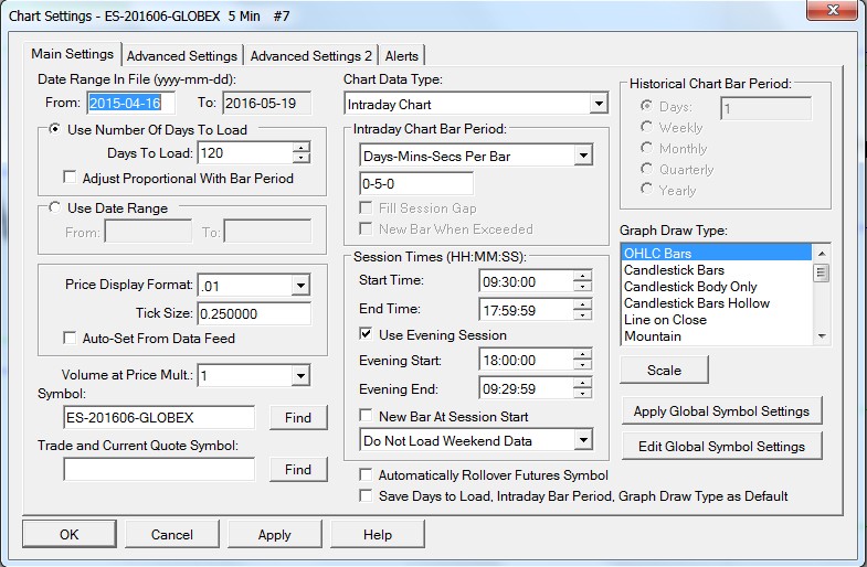 Hello, I am having an unexpected issue with the Horizontal Line at Time study. I am using it to automatically plot the market open for me on the chart via a point drawn between the times of 09:30:00 and 09:30:01. It works really well, but for some reason, it also plots a dot every Sunday at 6pm (refer to image attached). I'm not sure why it does this as the market isn't even open at 9:30am on Sunday. Attached is the screen capture of the study input and the chart to show how it plots fine on Friday and Monday, but for some reason also shows up on Sunday evening. Also attached is screen capture of Chart settings. I've tried playing around with the session times and weekend data settings to see if this would affect it but it doesn't. Its only a minor issue, but still odd that it would mark a point at 6pm when it should only be doing so at 09:30am. If there isn't a glitch, perhaps there is a better way to plot the market open than the way I'm doing it? Thanks. Date Time Of Last Edit: 2016-05-19 22:51:07