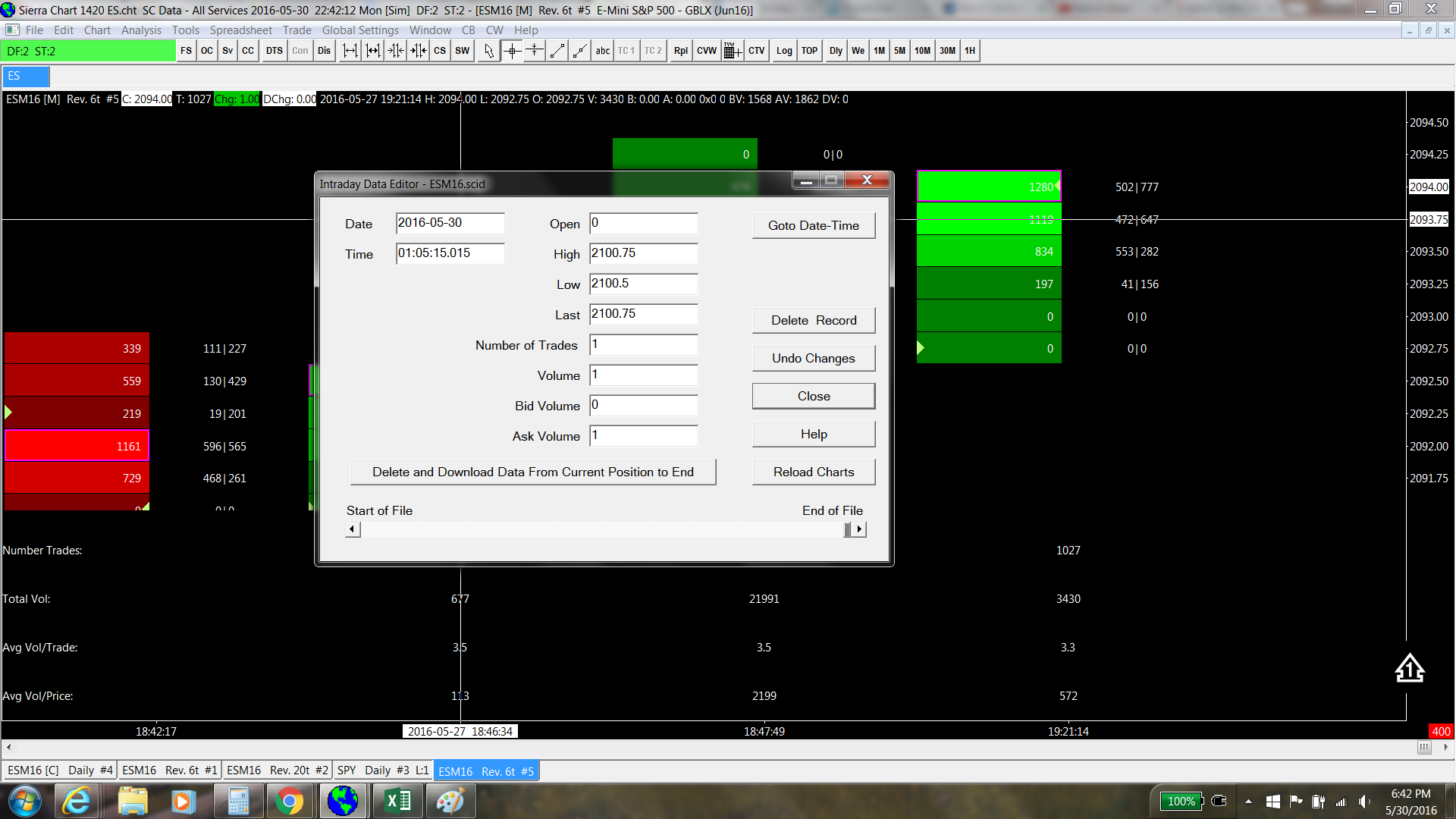 We will make this more clear in the instructions but you are going to have to re-download the data as explained: Tick by Tick Data Configuration Go to the chart and select Edit >> Delete All Data Download. The Numbers Bar study itself may have set the Intraday Data Storage Time Unit to 1 Tick but this was done after some non-tick data was already downloaded. Sierra Chart Support - Engineering Level Your definitive source for support. Other responses are from users. Try to keep your questions brief and to the point. Be aware of support policy: https://www.sierrachart.com/index.php?l=PostingInformation.php#GeneralInformation For the most reliable, advanced, and zero cost futures order routing, *change* to the Teton service: Sierra Chart Teton Futures Order Routing |