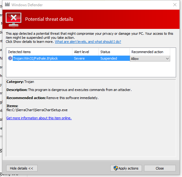 Windows Defender / SierraChartSetup.exe