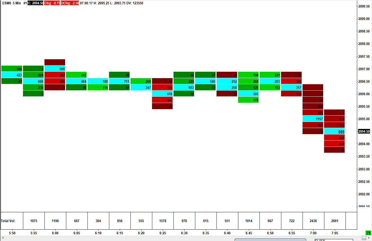 Looking at this page: http://www.sierrachart.com/index.php?page=doc/doc_NumbersBars.php#ColumnCompareThresholds Please see the image attached. I set Column 1 compare threshold to .90, just as a test, and assigned the blue color for range 3 up and down colors . I left the other compare thresholds (.25, .50) intact. Column 1 Background Coloring Method is "Based on Volume Percentage". Can someone explain to me based on the total volume displayed in the Numbers Bars - Calculated Values study, why certain prices are turning blue? I am just trying to get my head wrapped around how the compare thresholds work exactly. |