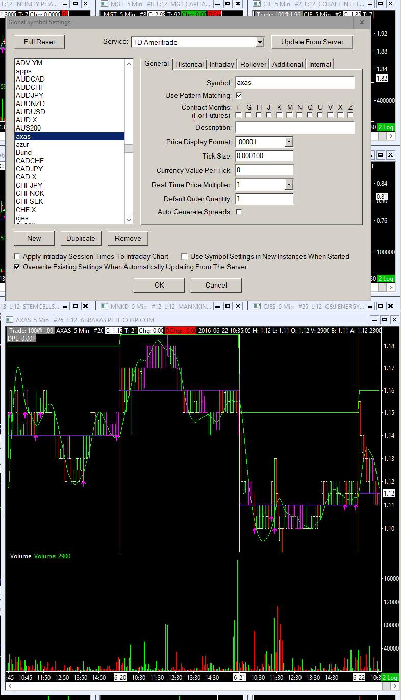 Hello, Is there a place to set the default for the price display/tick size format and to uncheck the auto-set from datafeed as a default. I think I am missing some alerts on the low priced stocks that trades in 10th's of a penny. Many thanks, Cy |