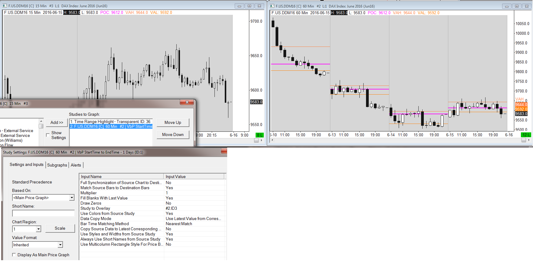 Okay, no problem. My intention was to prepare a Daily Chart with a displacement of +1 to see on a current M5 chart the "yesterdays" lines and values. Now, I have to use the VbP Study on an M5 Chart. Is there a way to see the lines and values from yesterday on a current chart (displacement of +1 Day)? |